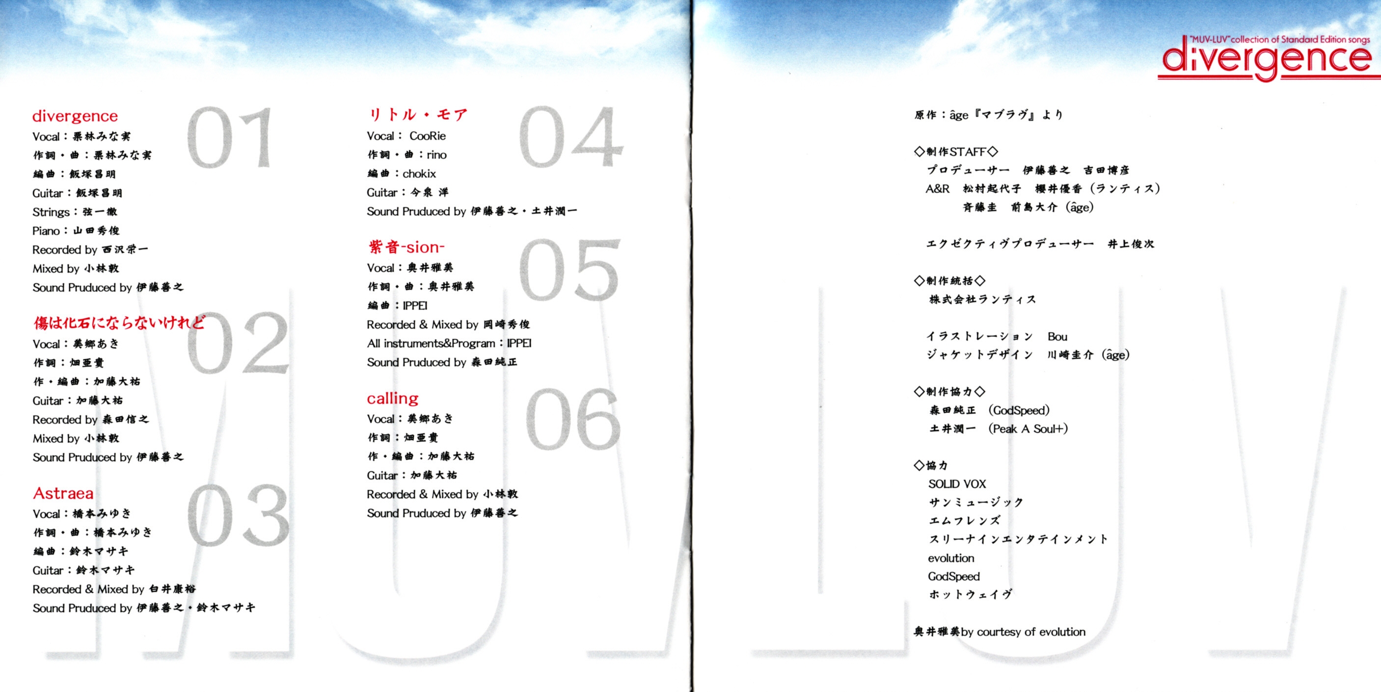 A&R: Kiyoko Matsumura (Lantis), Yuka Sakurai (Lantis), 斉藤圭 (âge), 前島大介 (âge)