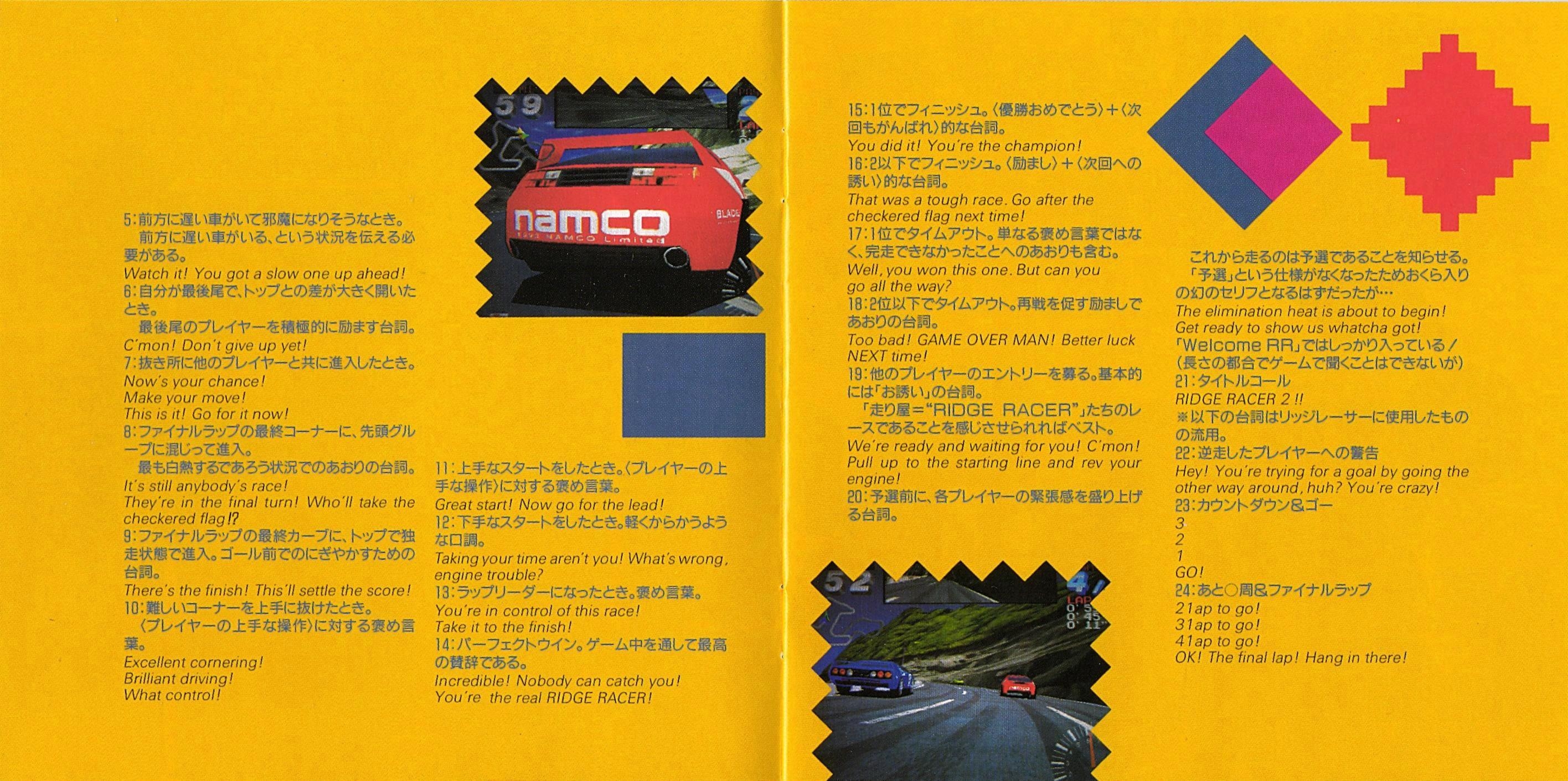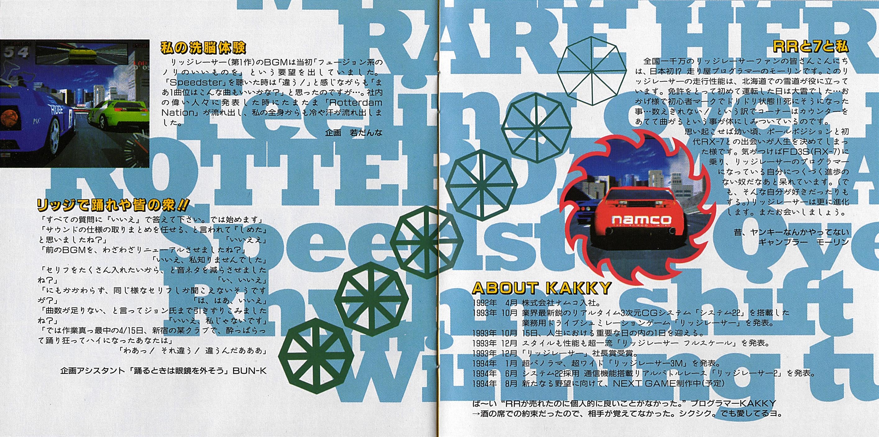 Special Thanks: "RIDGE RACER 2" TEAM