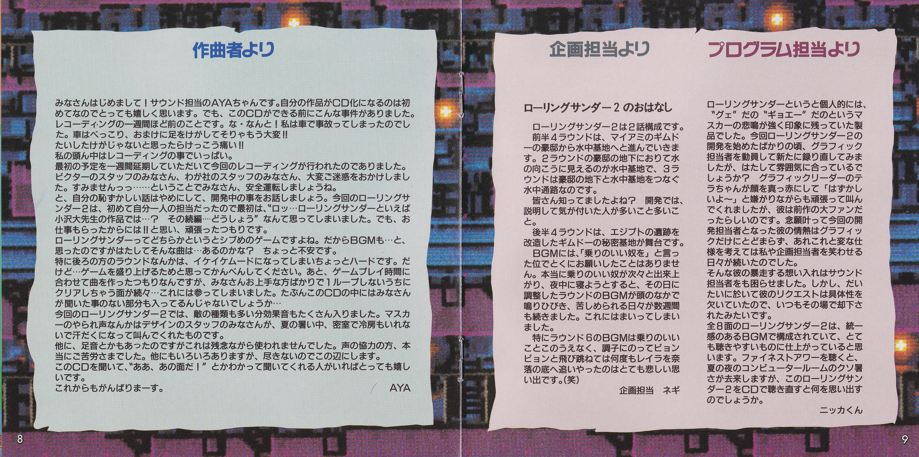 Liner Notes: AYA, Negi [ネギ], Nikkakun [ニッカくん]
