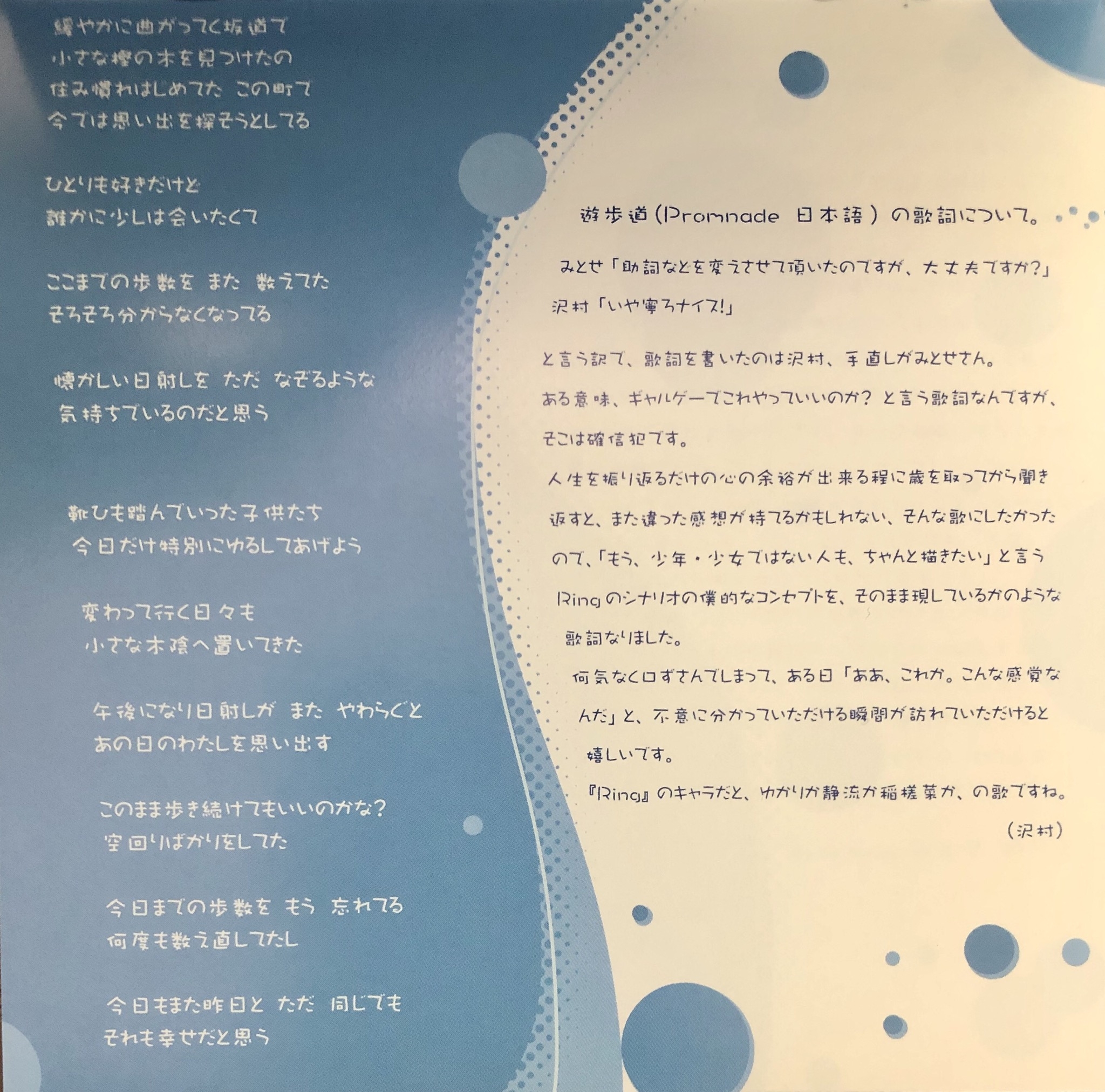Lyrics: Nayu Sawamura [沢村奈唯]
