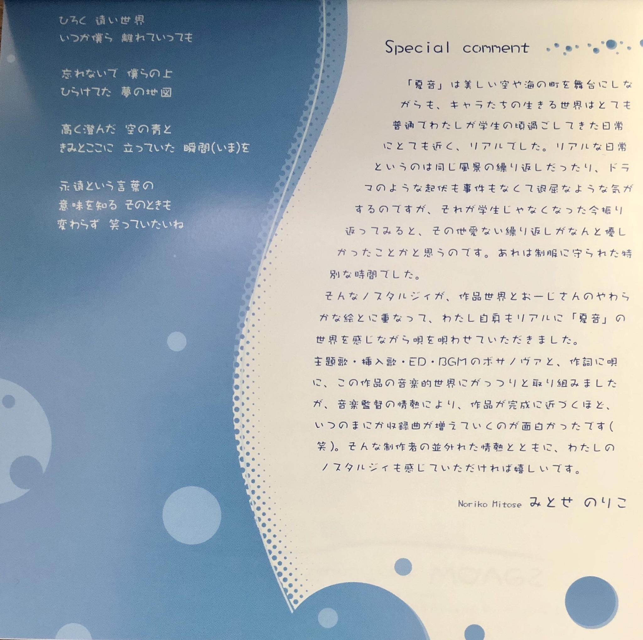 Vocal/Chorus/Lyrics: Noriko Mitose