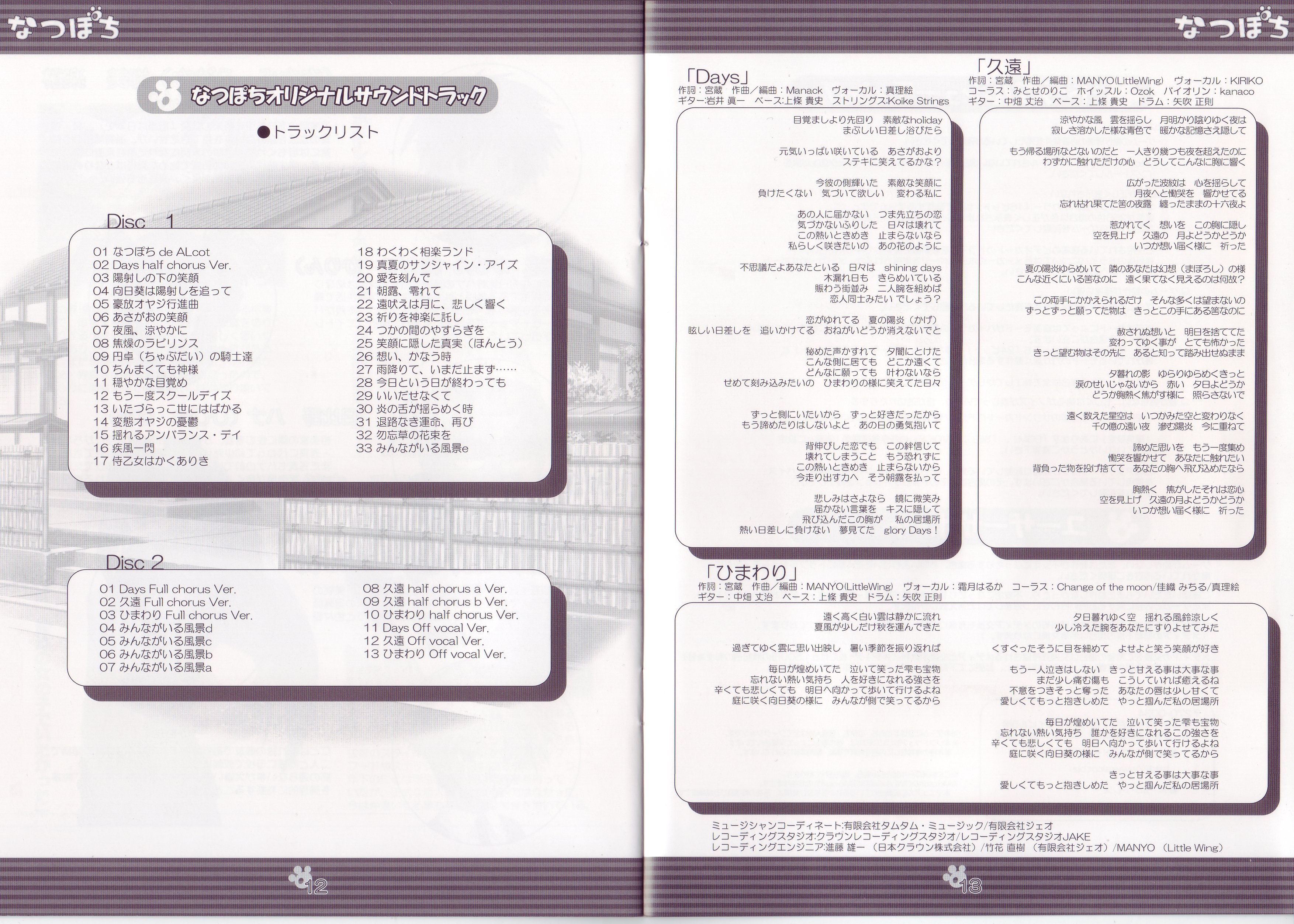 Disc1&Disc2 なつぽち 初回特典 オリジナルサウンドトラック