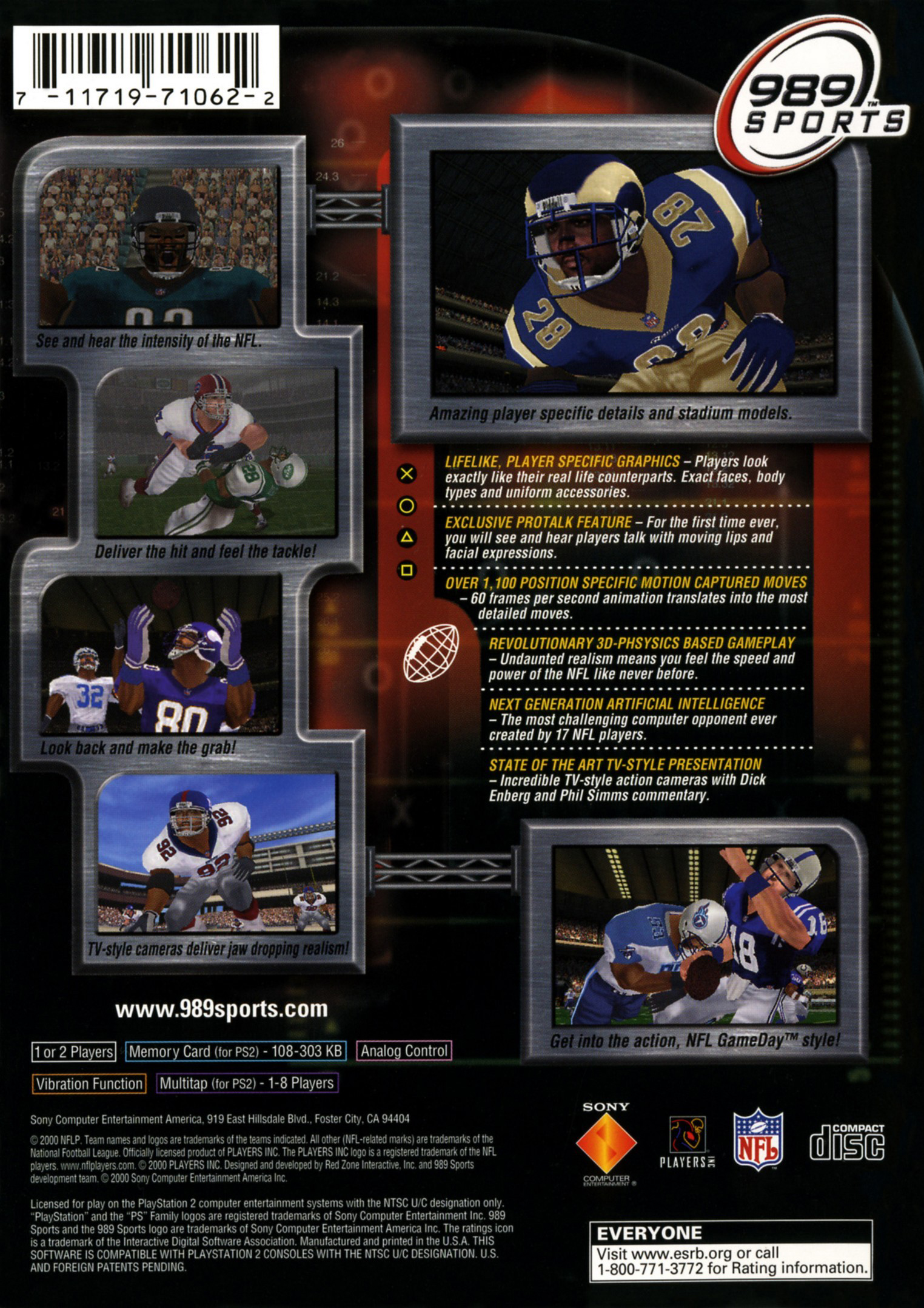 This edition features lifelike player specific graphics that make players look like their real life counterparts. Also new is commentary by Dick Enberg and Phil Simms. Another feature is total-control passing and running. Total-control passing lets you lead, overthrow, and underthrow your receivers so that you can throw more completions and prevent defenders from intercepting your passes. The play editor has been improved making it easier to make new patterns for your receivers and running backs. The general manager mode has also been changed, mostly to help you with the draft so you can easily see what areas of your team need improvement.
