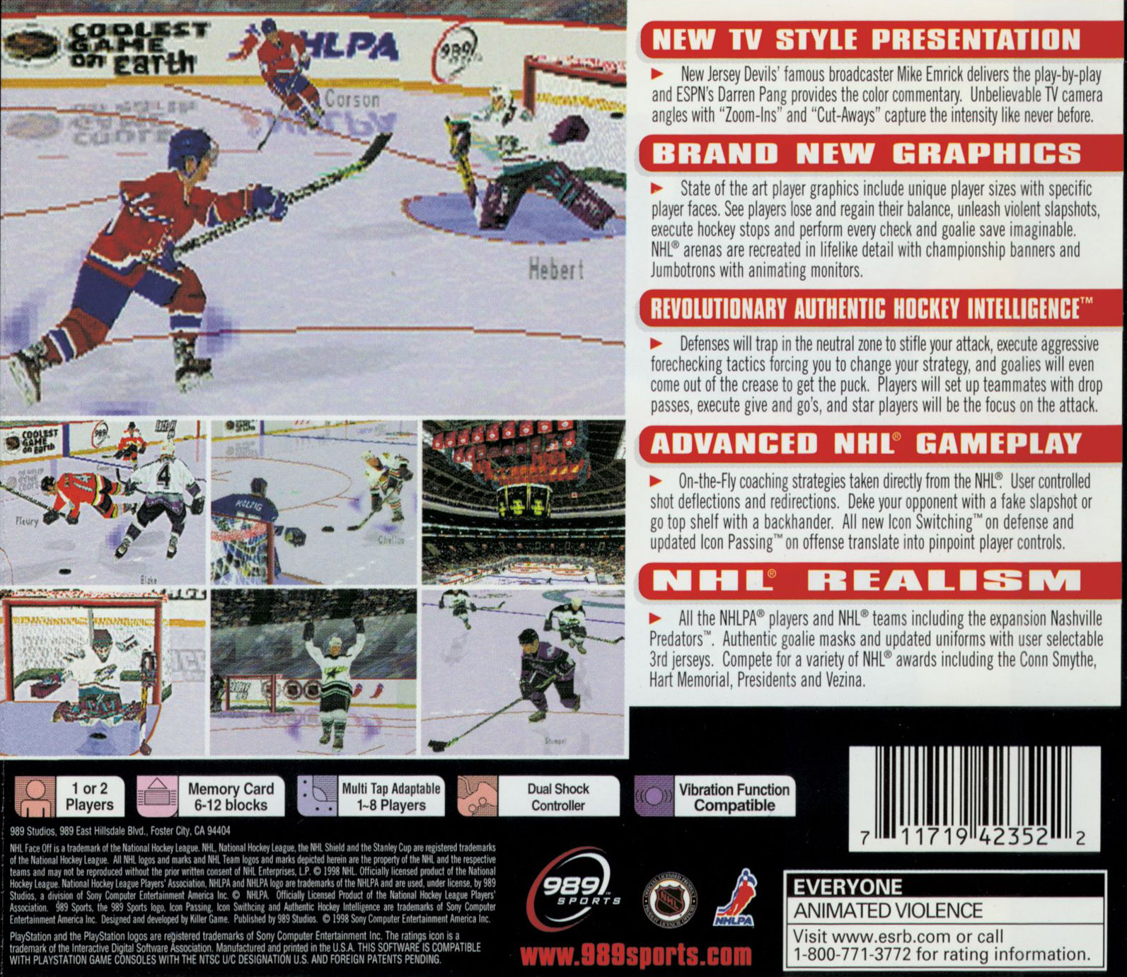 - New Jersey Devils' famous broadcaster Mike Emrick delivers the play-by-play and ESPN's Darren Pang provides the color commentary. Unbelievable TV camera angles with "Zoom-Ins" and "Cut-Aways" capture the intensity like never before.