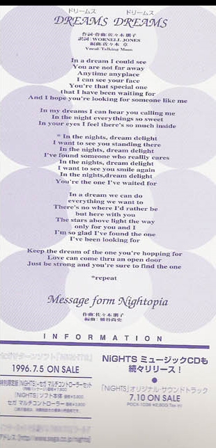 セガサターンソフト [NiGHTS] テーム・ソング DREAMS DREAMS c/w Message from Nightopia
