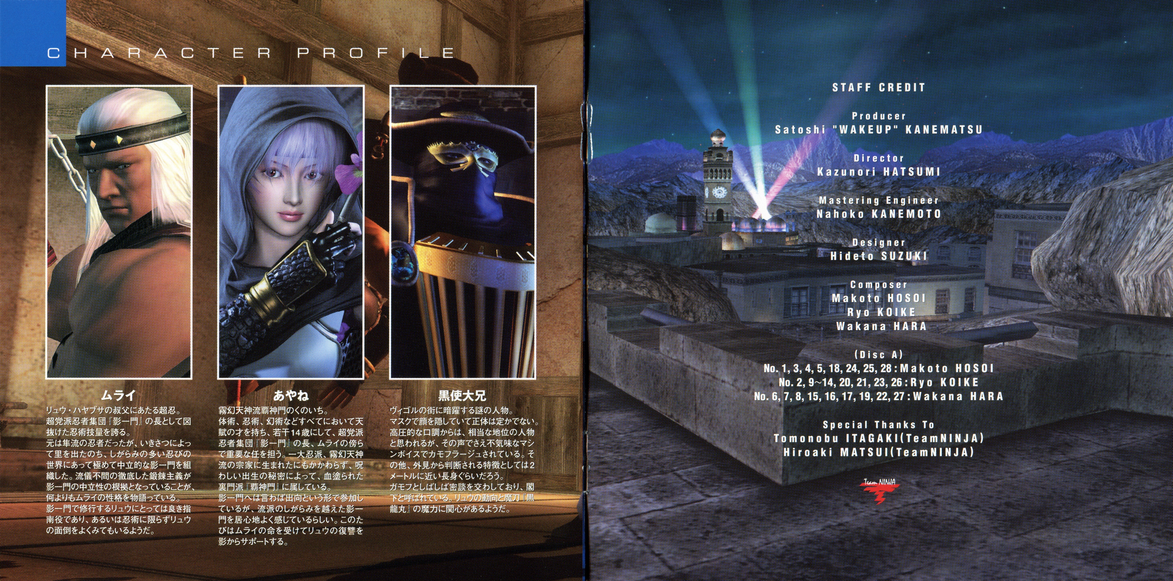 Special Thanks To: Tomonobu ITAGAKI (TeamNINJA), Hiroaki MATSUI (TeamNINJA)