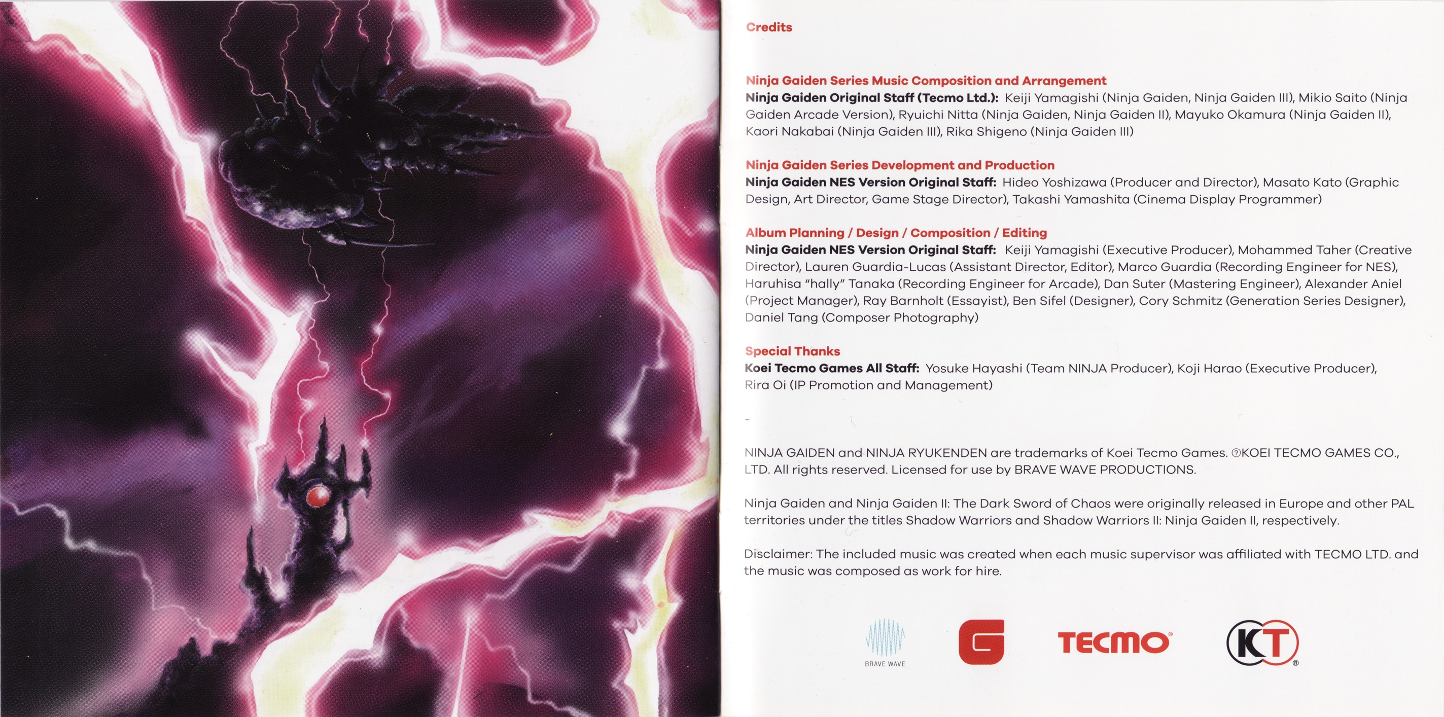 NINJA GAIDEN and NINJA RYUKENDEN are trademarks of Koei Tecmo Games. ⓒKOEI TECMO GAMES CO., LTD. All rights reserved. Koei Tecmo Games Co., Ltd. owns the rights to all NINJA GAIDEN and NINJA RYUKENDEN products. Licensed for use by BRAVE WAVE PRODUCTIONS.