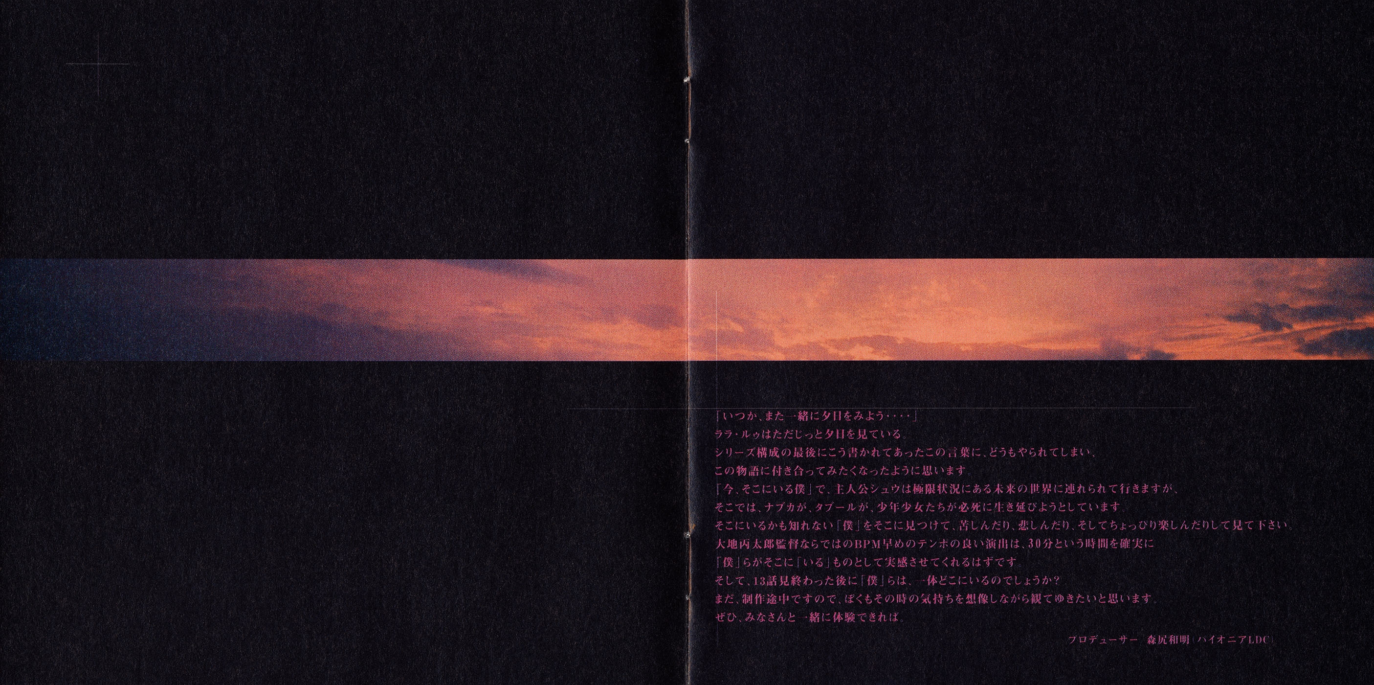 SPECIAL THANKS TO: Kazuaki Morijiri, Kei Fukura (PIONEER LDC), Hiroaki Inoue, 隈部昌一, 松嵜義之 (AIC), Kazuya Tanaka (AQUATONE), Eri Shirasaki (Rakuonsha), Hideichi Kurita (POWER BOX), 宮崎和子事務所, 上田章二 (六文銭ファクトリー)