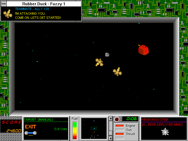 Sinistar style arcade shooter with some strategy sim elements. Choose your ship, defend your file system against imaginary viruses, take on hostile factions, compete in races, and defeat the Inner Demon.