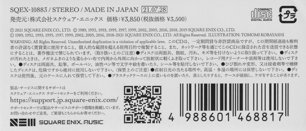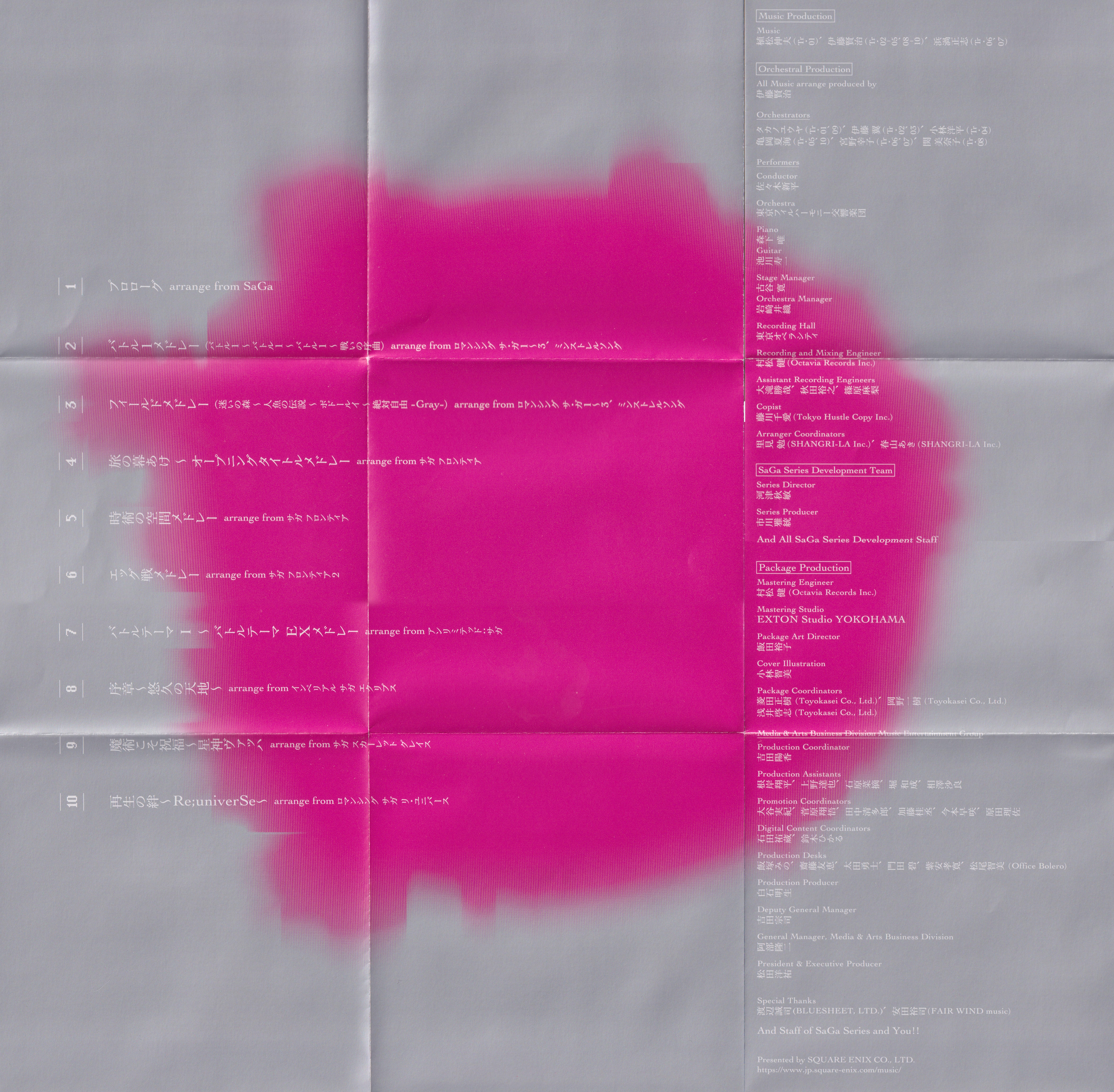 Music: Nobuo Uematsu (Tr. 01), Kenji Ito (Tr. 02-05, 08-10), Masashi Hamauzu (Tr. 06, 07)