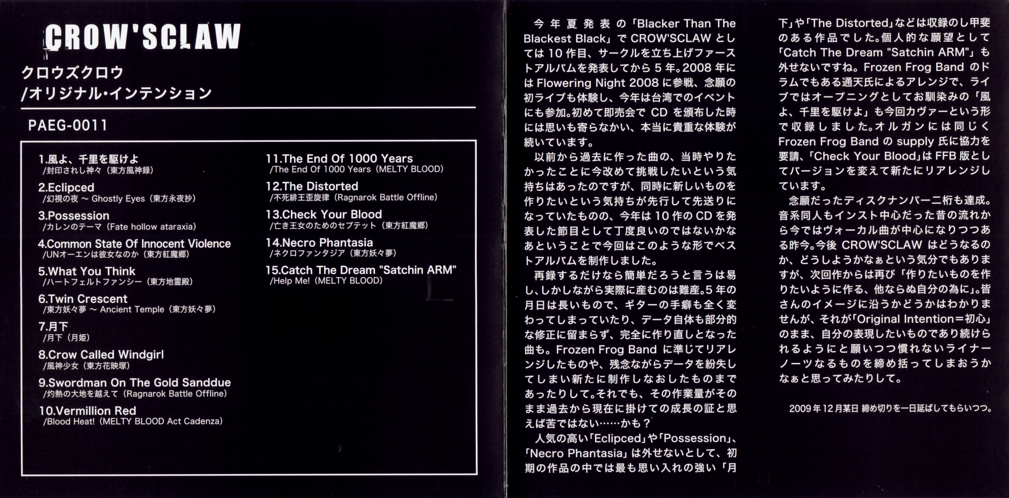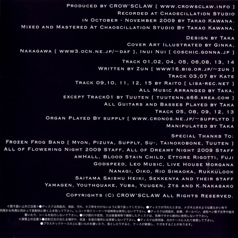 Recorded at Chaoscillation Studio in October - November 2009 by Takao Kawana