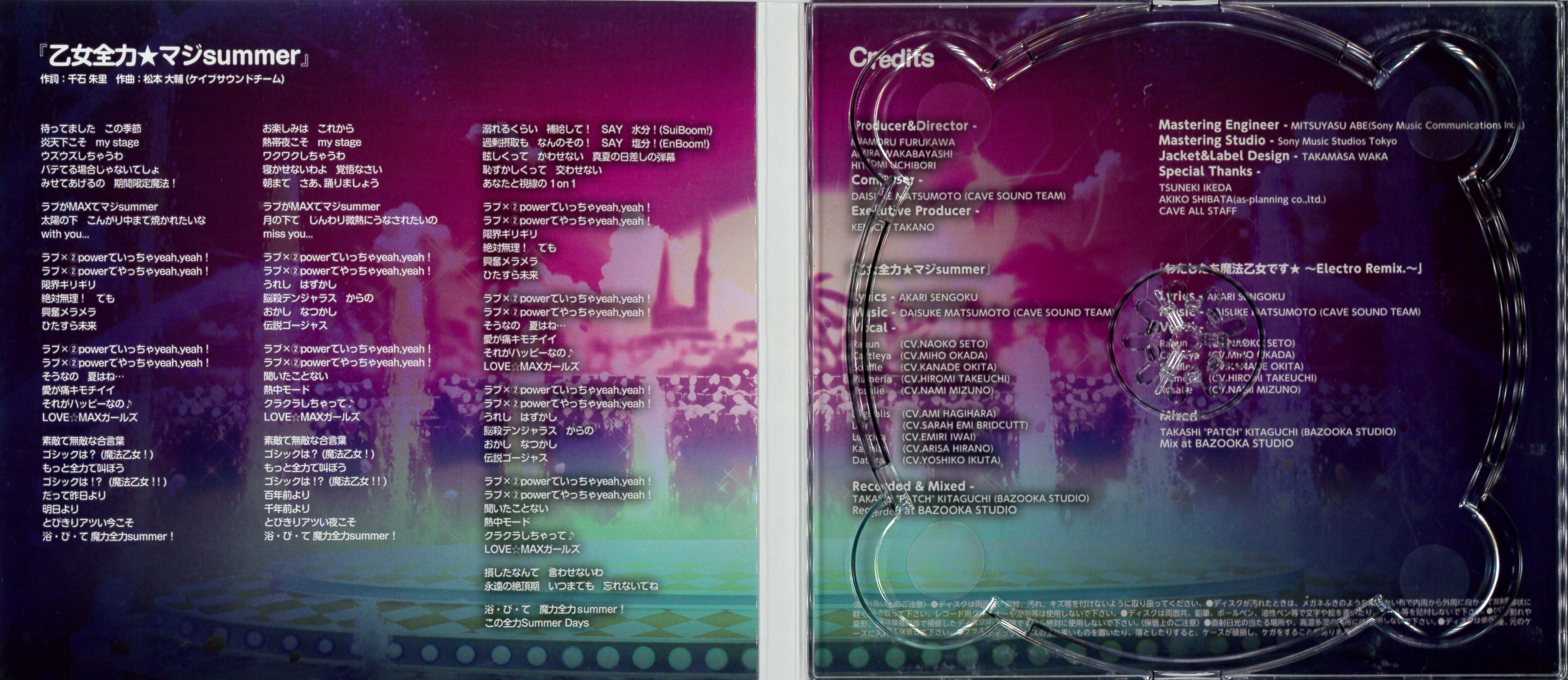 Vocal - Ranun (CV.NAOKO SETO), Cattleya (CV.MIHO OKADA), Souffle (CV.KANADE OKITA), Plumeria (CV.HIROMI TAKEUCHI), Rosalie (CV.NAMI MIZUNO)