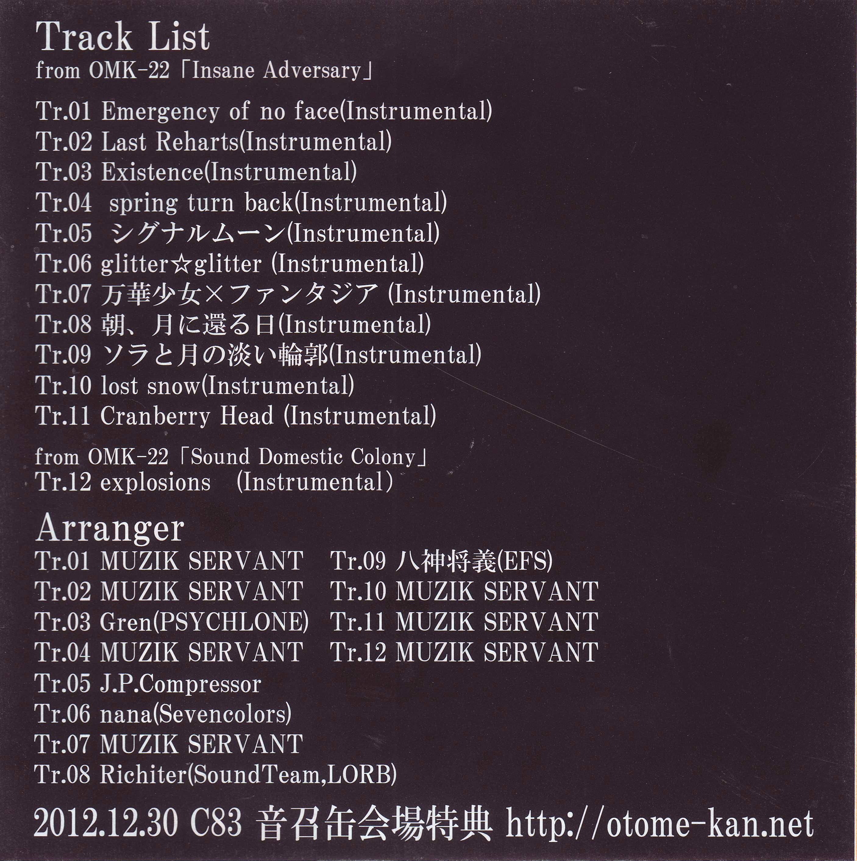 C83 会場特典CD内容 Instrumental Trax Disk