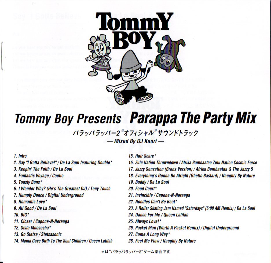 Although it does contain the slightly arranged OST of Parappa the Rapper 2, most of the tracks are cut short and are faded in and out with other music from artists that had work published by Tommy Boy Records.