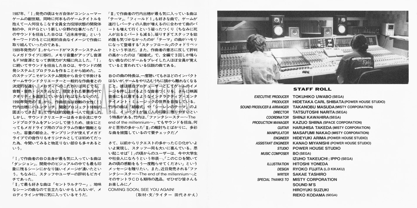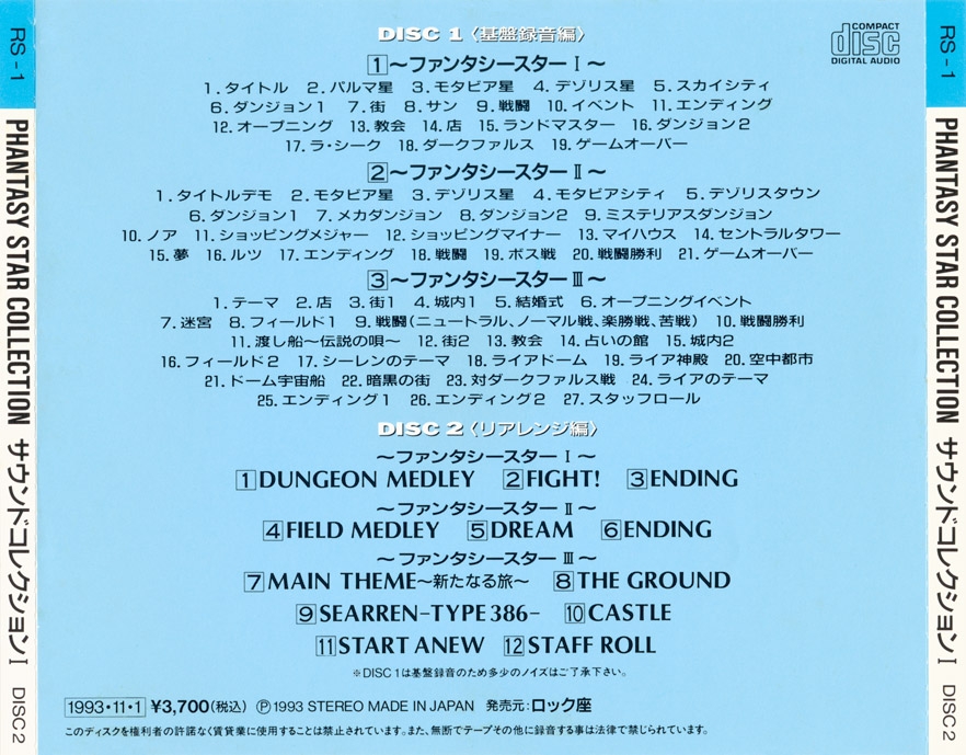 Disc 2 (Labeled, "Rearrange Version") contains rearranged music from Phantasy Star I - III