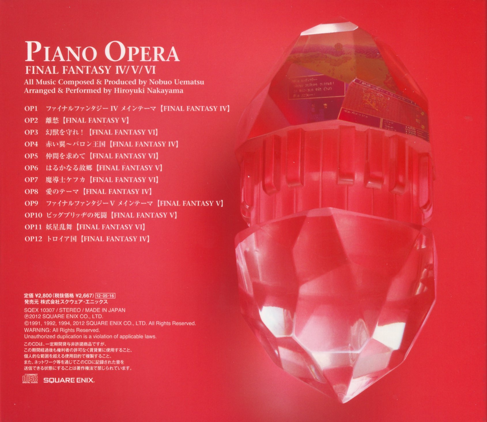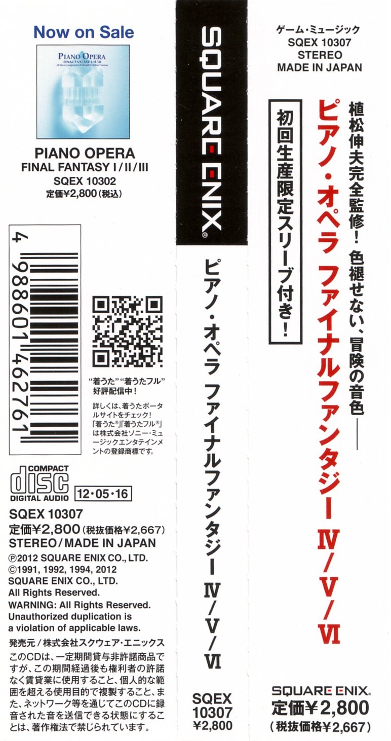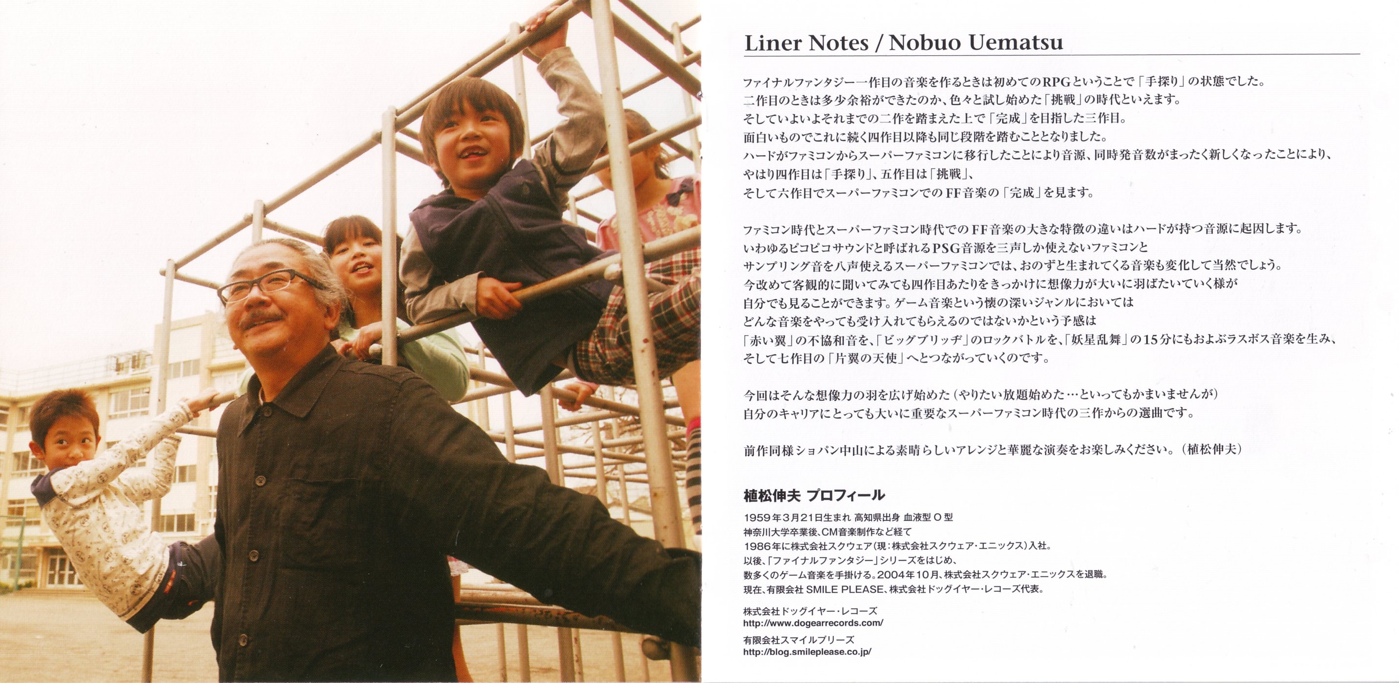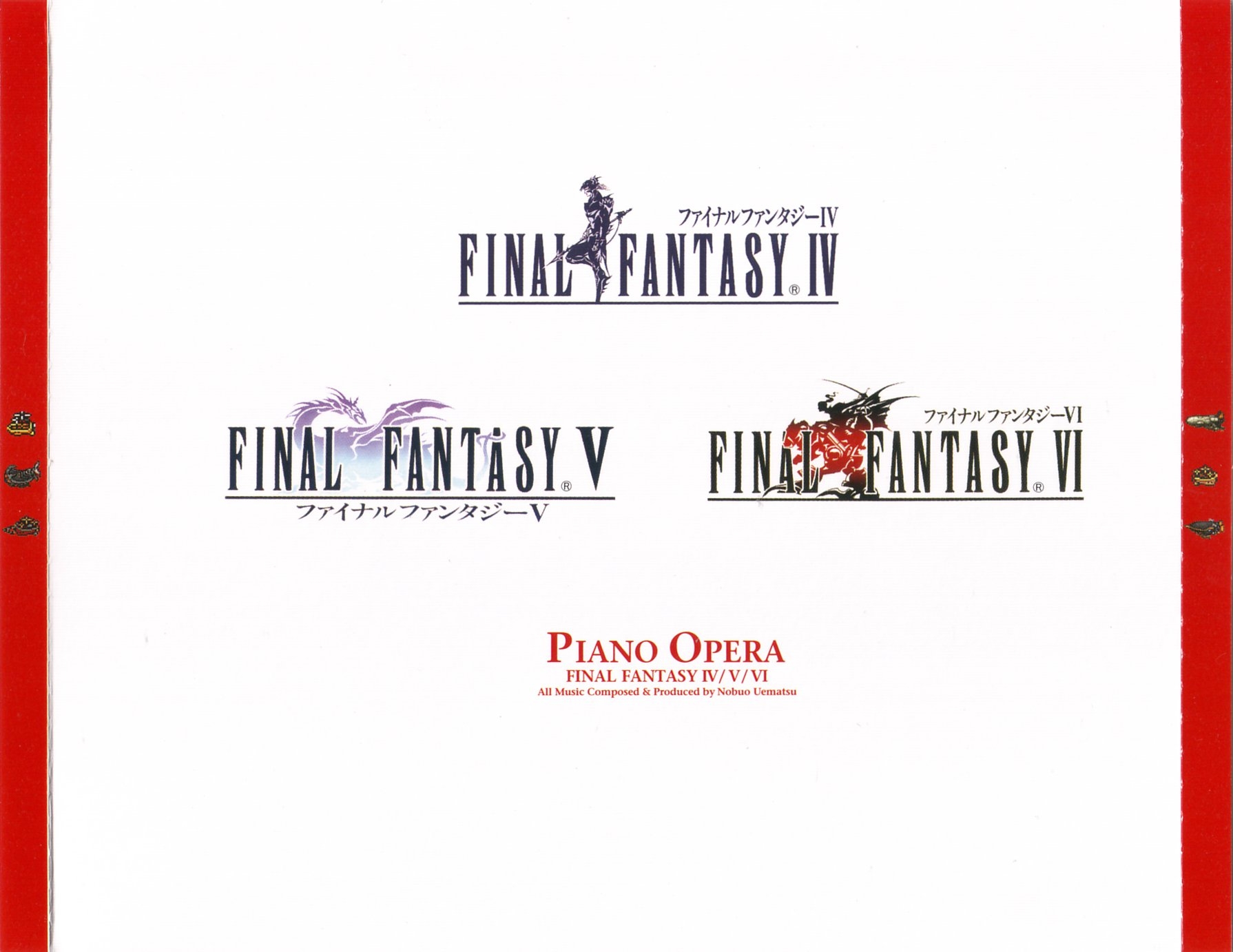Liner Notes: Nobuo Uematsu (pg. 4), Hiroyuki Nakayama (pg. 7, 8)