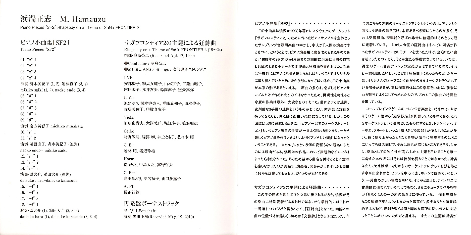 This reprinting of SSCX-10033 contains a newly recorded bonus track (25).