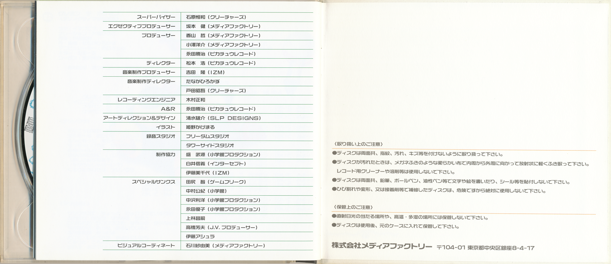 Producer: Tetsu Kayama (Media Factory), Yosuke Ozawa (Media Factory), Katsuharu Nagata (Pikachu Records)
