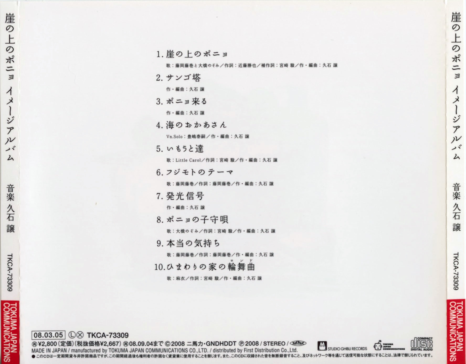 Published by: STUDIO GHIBLI RECORDS, TOKUMA JAPAN COMMUNICATIONS