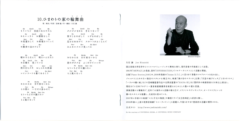 Vn.Solo: Yasushi Toyoshima / Composition and Arrangement: Joe Hisaishi