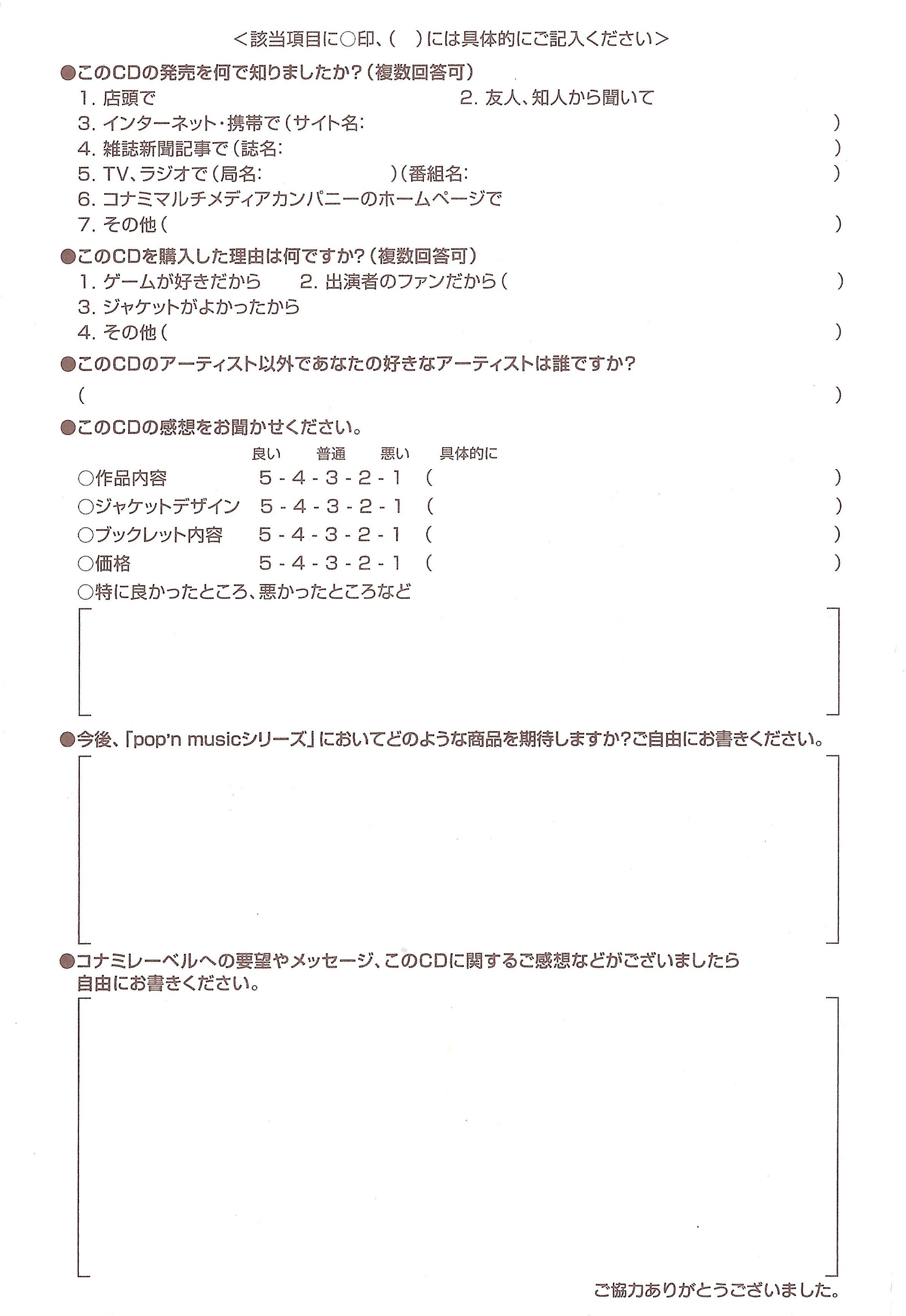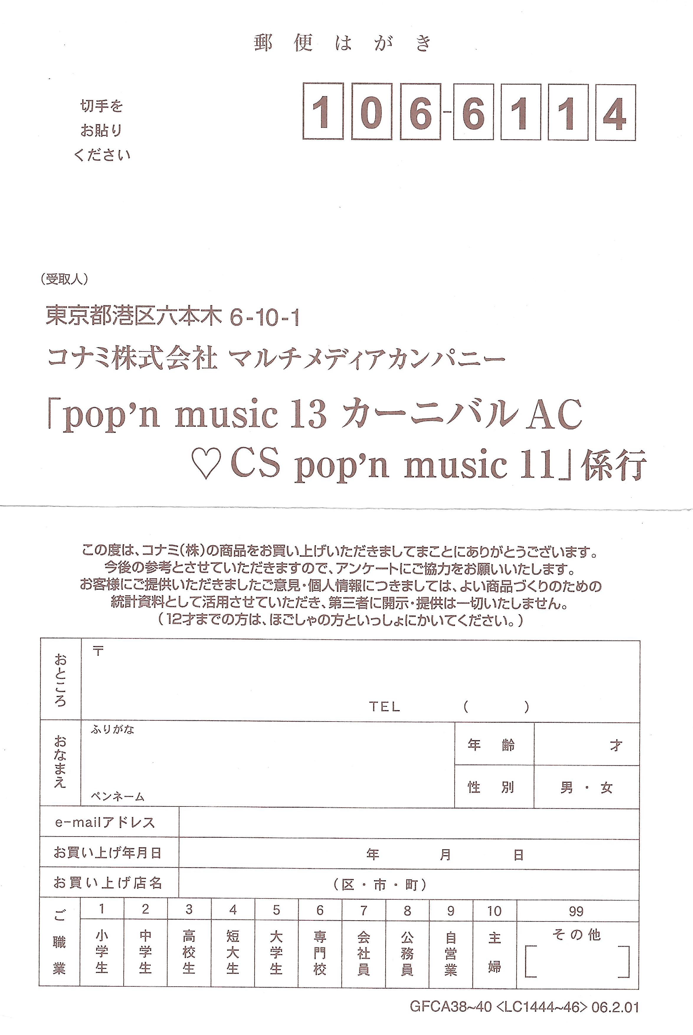 Special Thanks to: VJ GYO, F-FLY, MAYA, tQy, mito, gai, Yoshioka, YAM, nbo, Miho Toyoda, Production I.G, KONAMI GAMESOFT COMPANY pop'n music Staffs, KONAMI ONLINE COMPANY, KONAMI AMUSEMENT COMPANY All Staffs