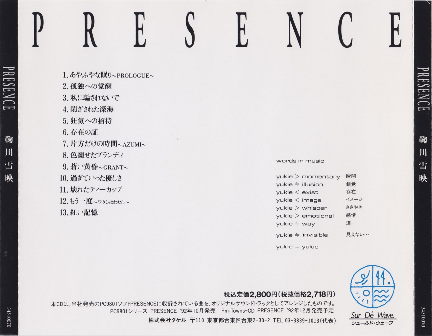 13 Composed & Singing: Yukie Marikawa / Arranged: Yukie Marikawa, Kazuhide Sasuga / Words: Kazuhide Sasuga