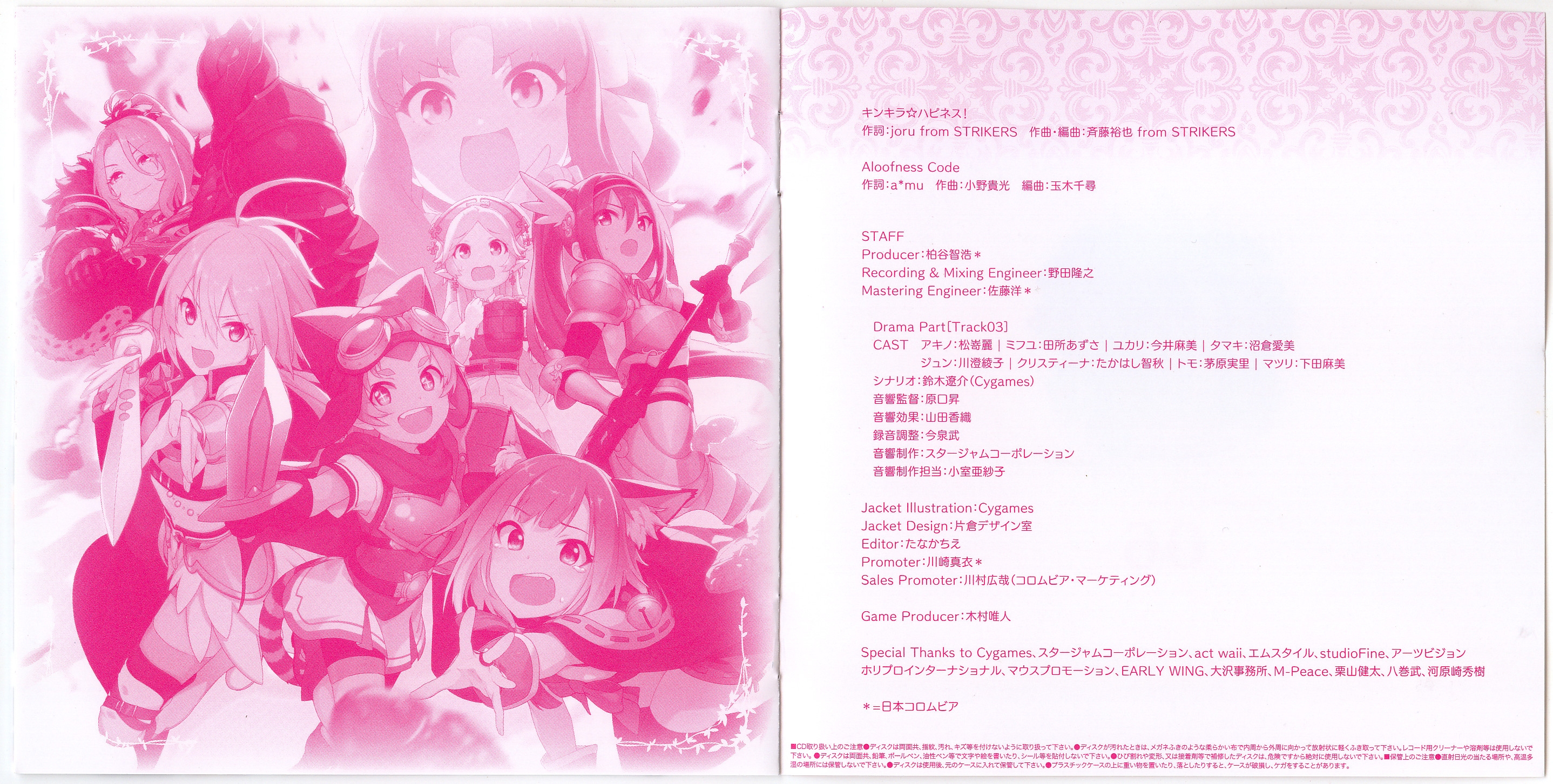 Special Thanks to Cygames, StarJam Corporation, act waii, M-style, studioFine, ARTSVISION, HoriPro International, MAUSU PROMOTION, EARLY WING, OFFICE OSAWA, M-Peace, Kenta Kuriyama, Takeshi Yamaki, Hideki Kawarasaki