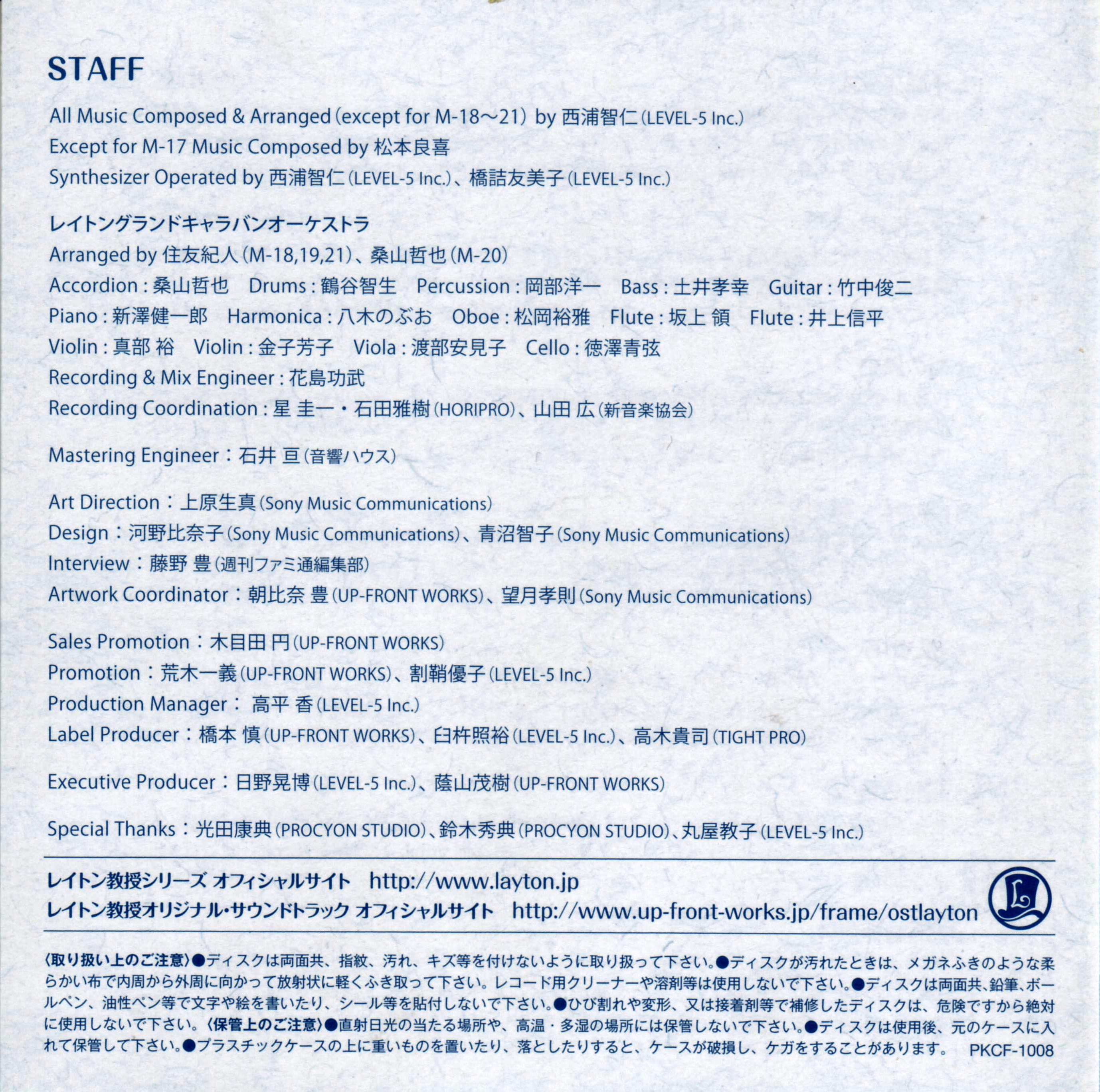 Special Thanks: Yasunori Mitsuda (PROCYON STUDIO), 鈴木秀典 (PROCYON STUDIO), 丸屋教子 (LEVEL-5 Inc.)