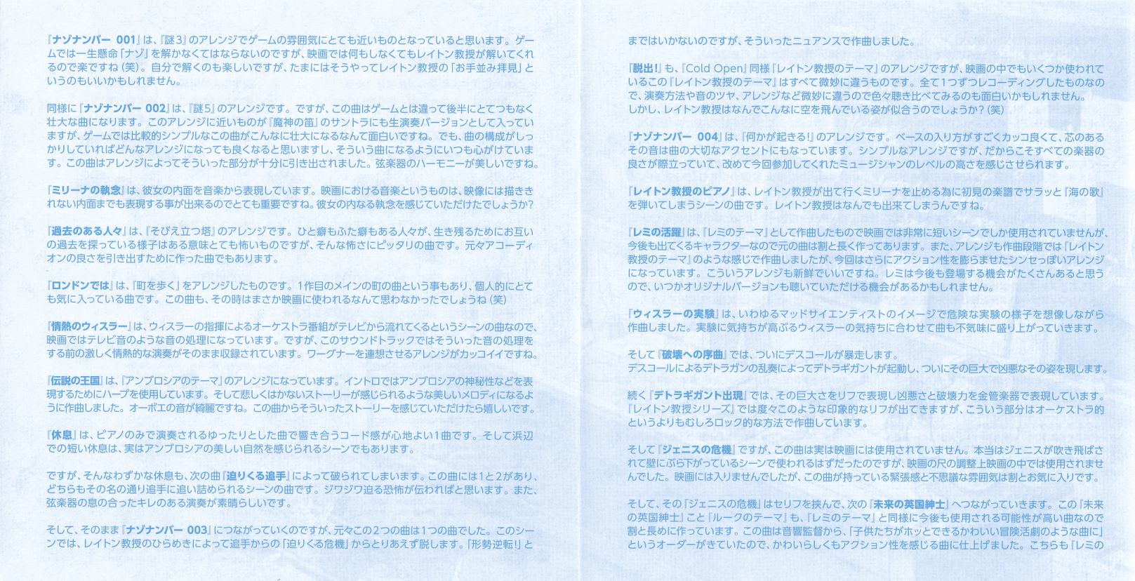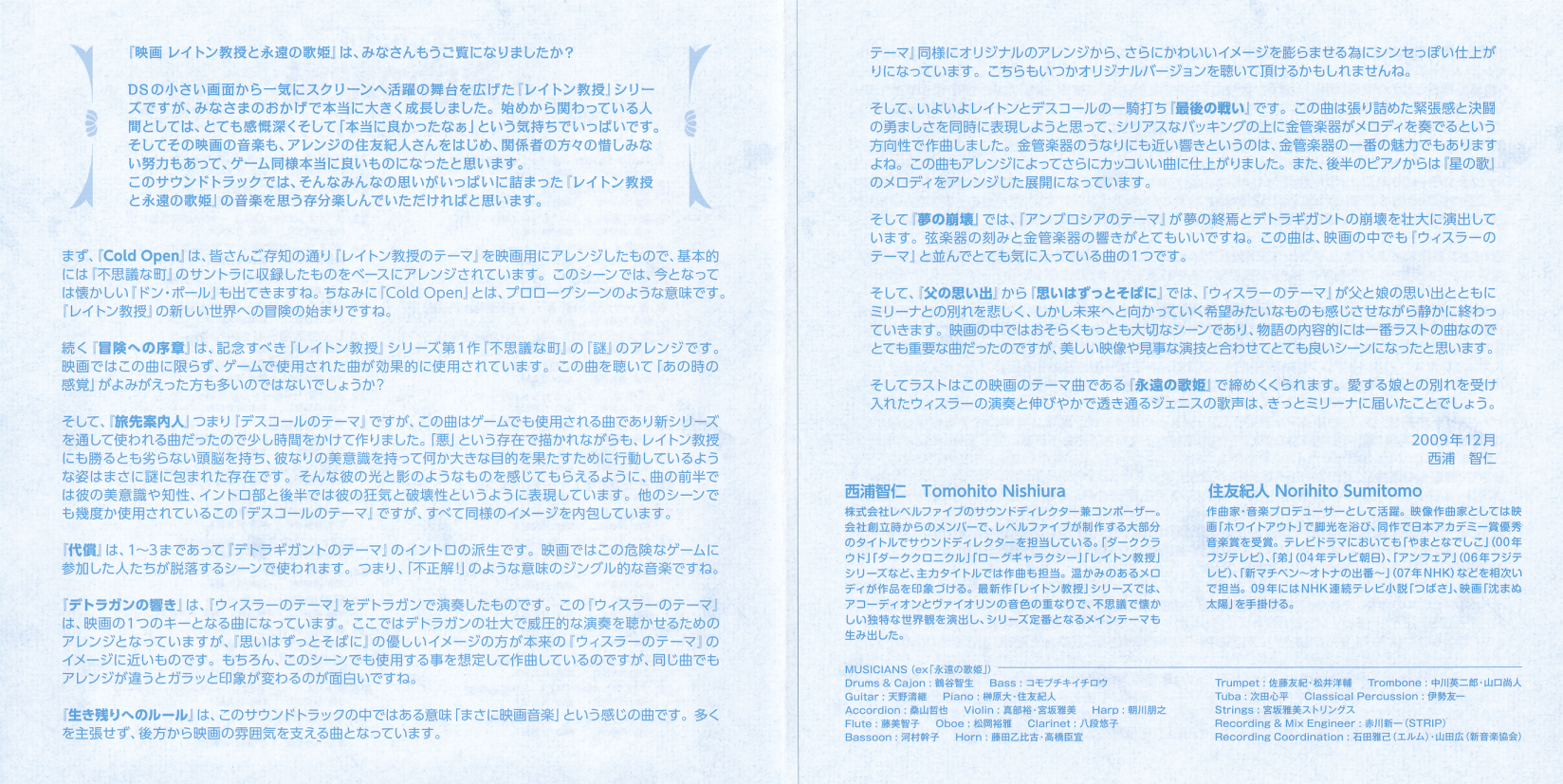 Special Thanks to: Masakazu Hashimoto, Atsushi Isoyama (PONY CANYON), Yasushi Ohshima (PONY CANYON), Team Layton