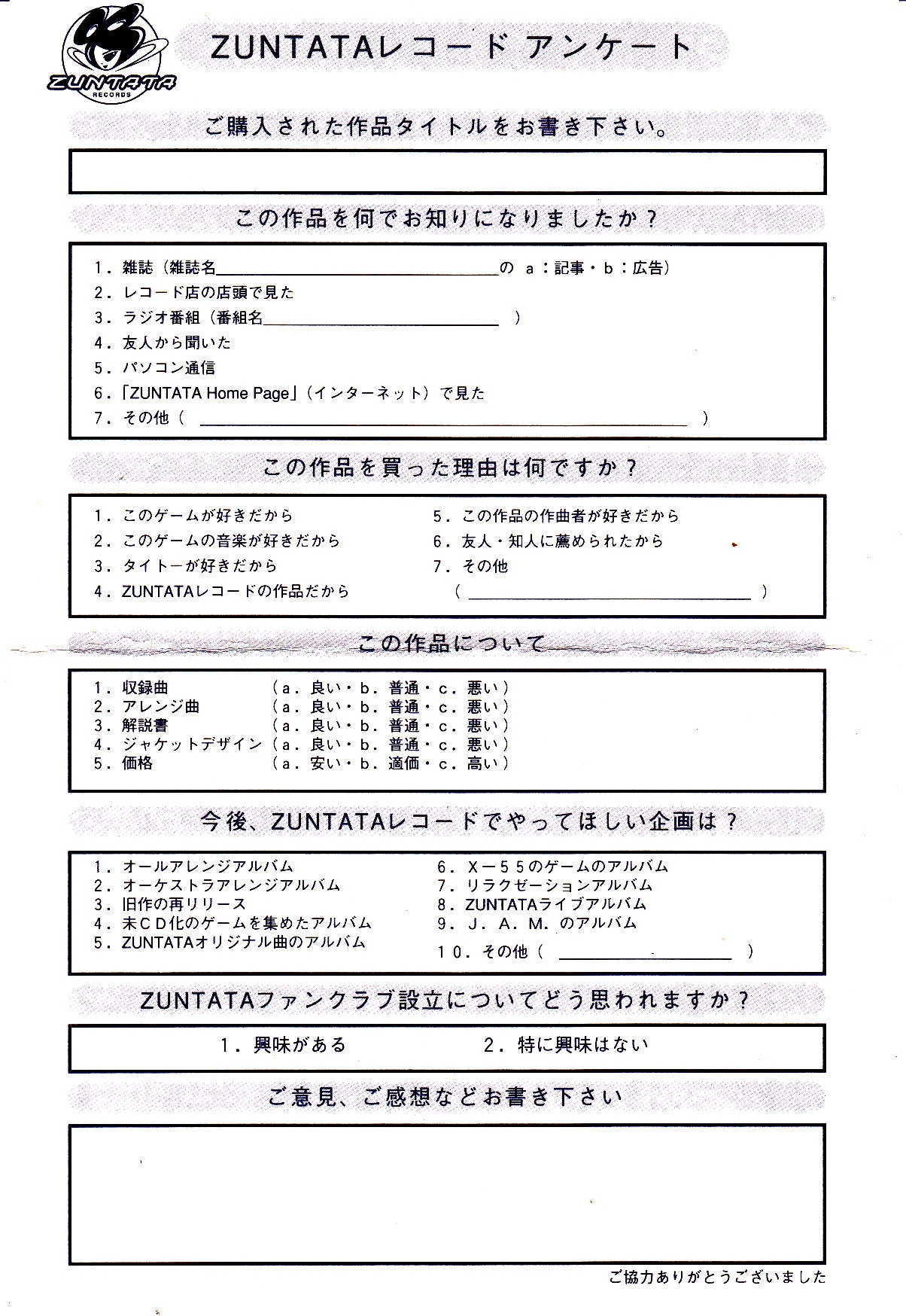 Production coordinator : KOJI KUROSAKI (ZUNTATA RECORDS)