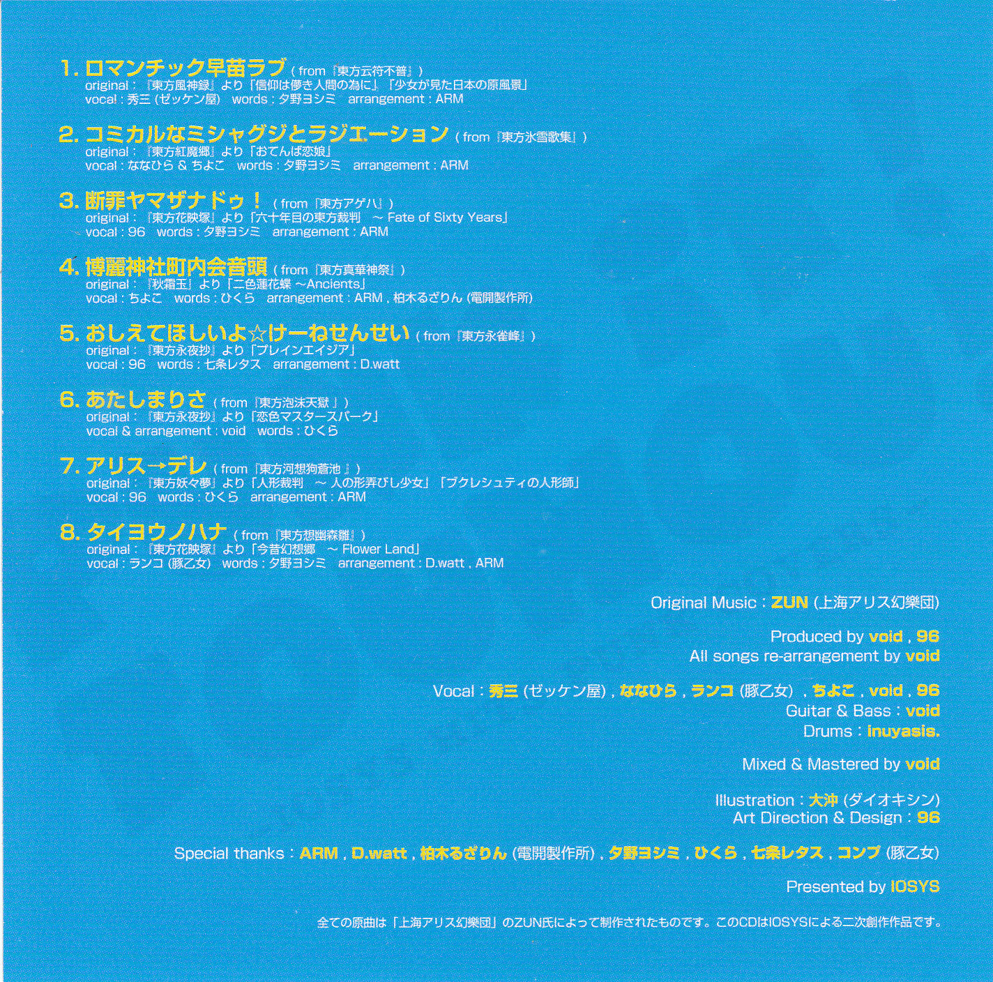 Vocal : 秀三 (ゼッケン屋) , ななひら , ランコ (豚乙女) , ちよこ , void , 96