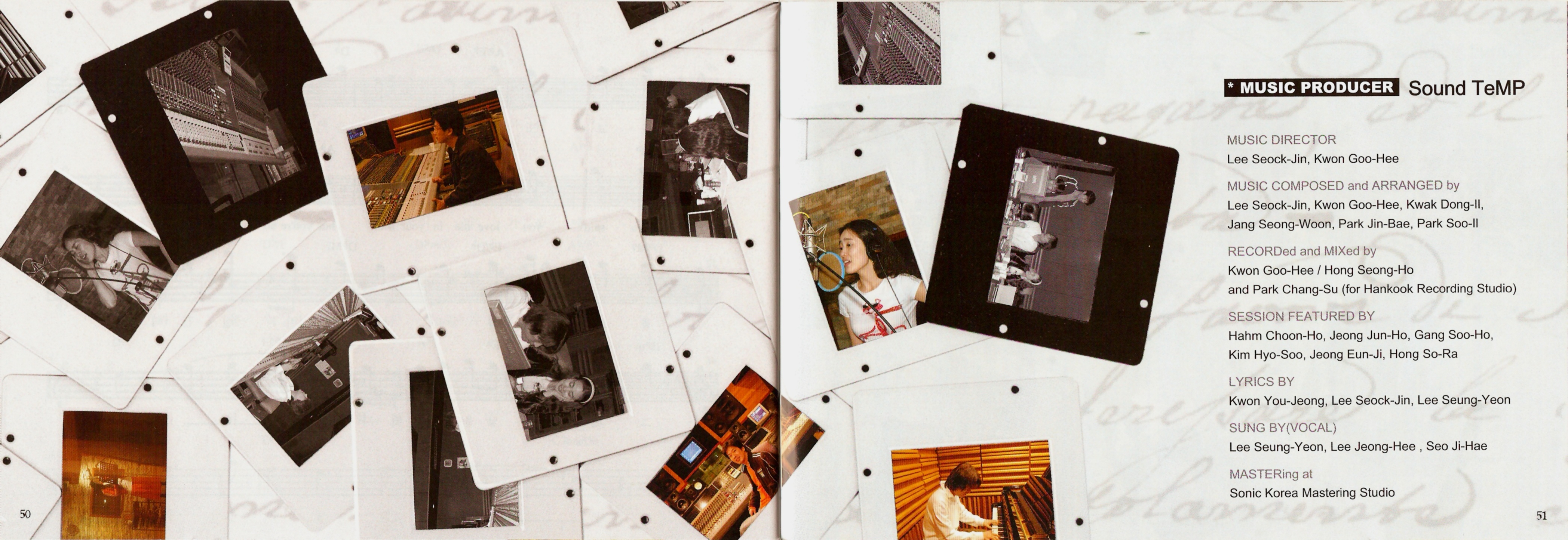 RECORDed and MIXed by Kwon Goo-Hee, Hong Seong-Ho, and Park Chang-Su (for Hankook Recording Studio)
