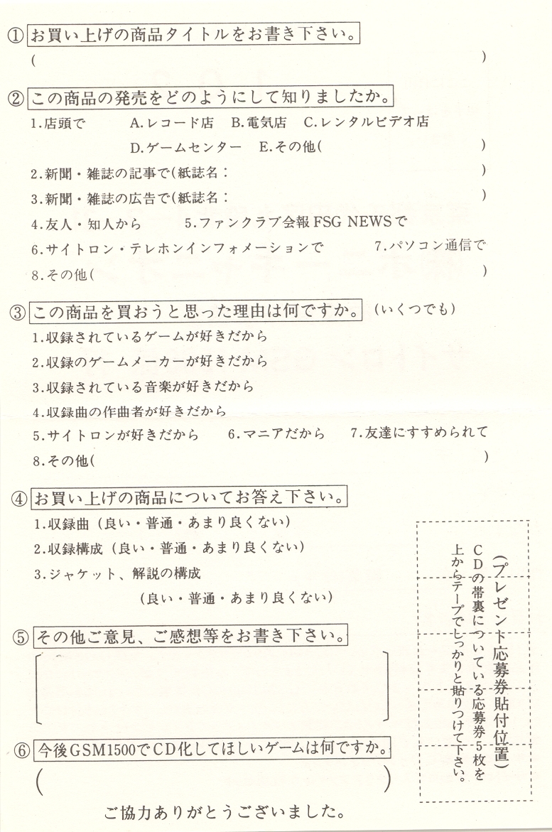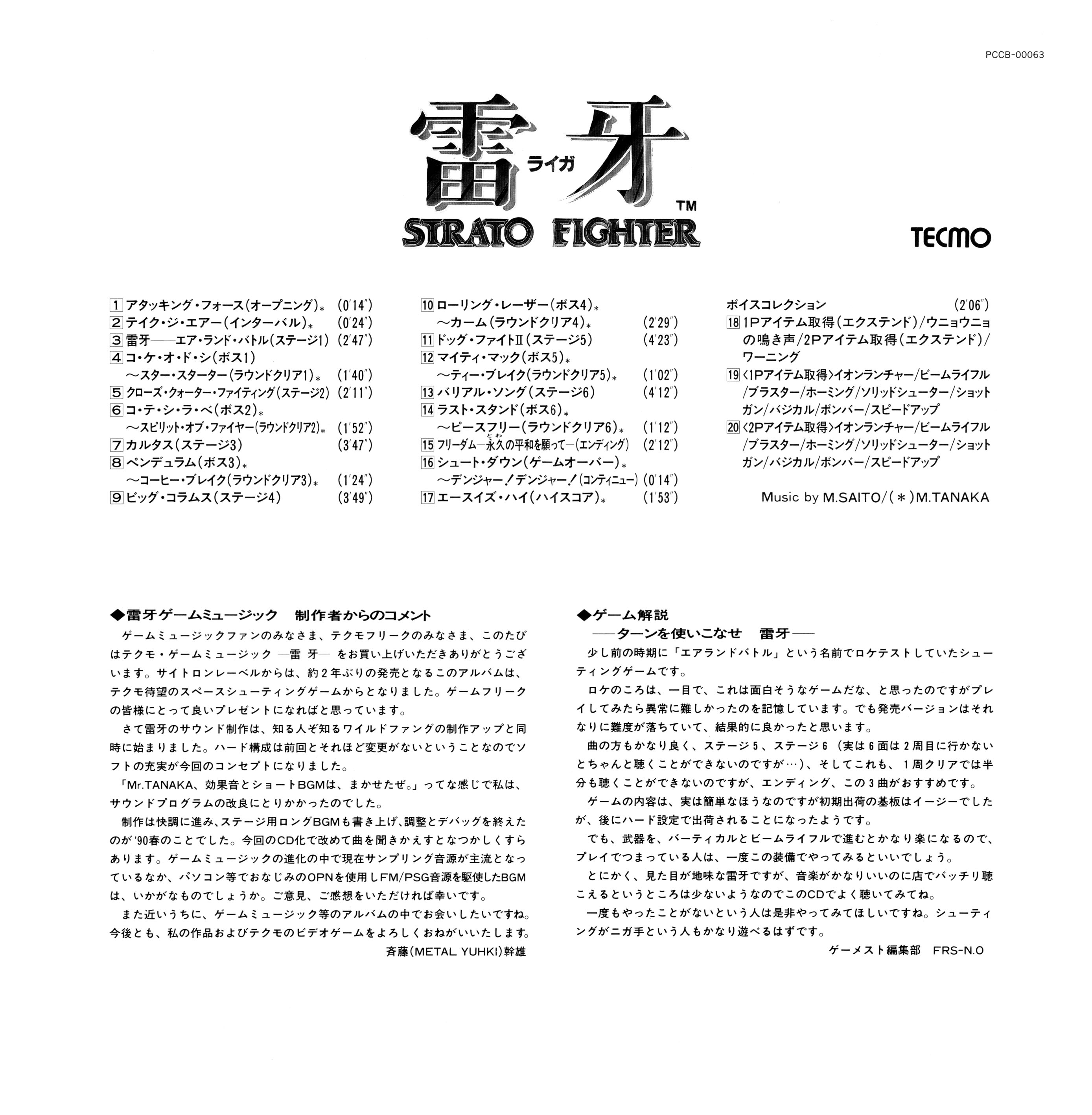 Liner Notes: Mikio (METAL YUHKI) Saito, FRS-N.O (Gamest Editorial Department / ゲーメスト編集部)