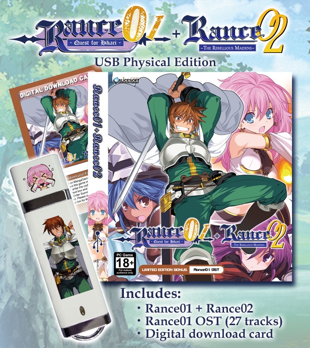 The Rance 01 + 02 Limited Edition hardcopy from MangaGamer includes the official soundtrack (OST) for Rance 01 – Quest for Hikari. This OST features 27 tracks that encapsulate the game's adventurous and comedic tone. Notable tracks include "Ran Ran Rance," "Unbridled Eroticism," and "Very Dungeon," offering a mix of energetic and atmospheric compositions. The music blends retro RPG elements with modern arrangements, enhancing the game's immersive experience.