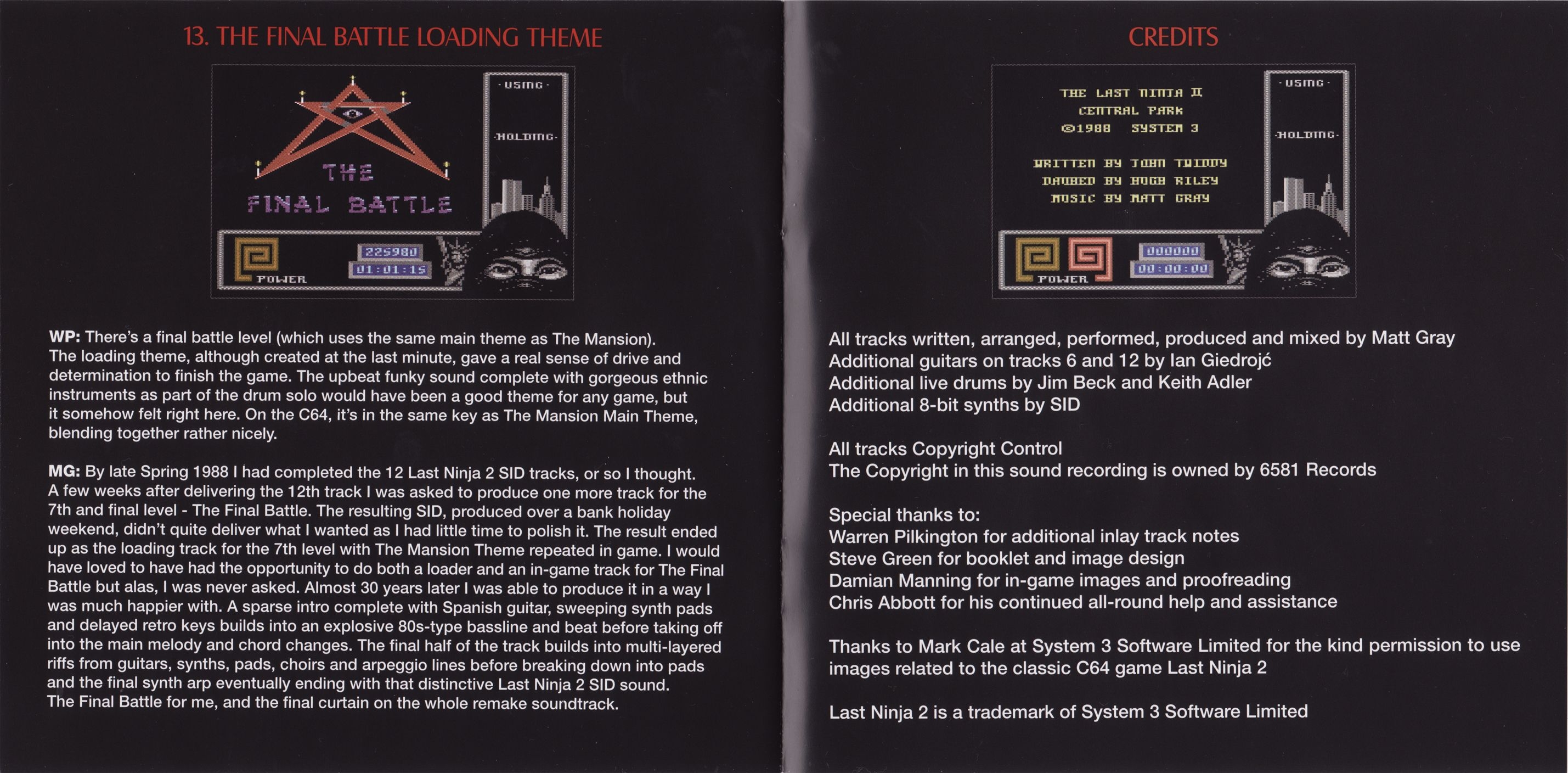 A standalone picture disk CD with a booklet containing the entire Last Ninja 2 soundtrack remade by Matt Gray.