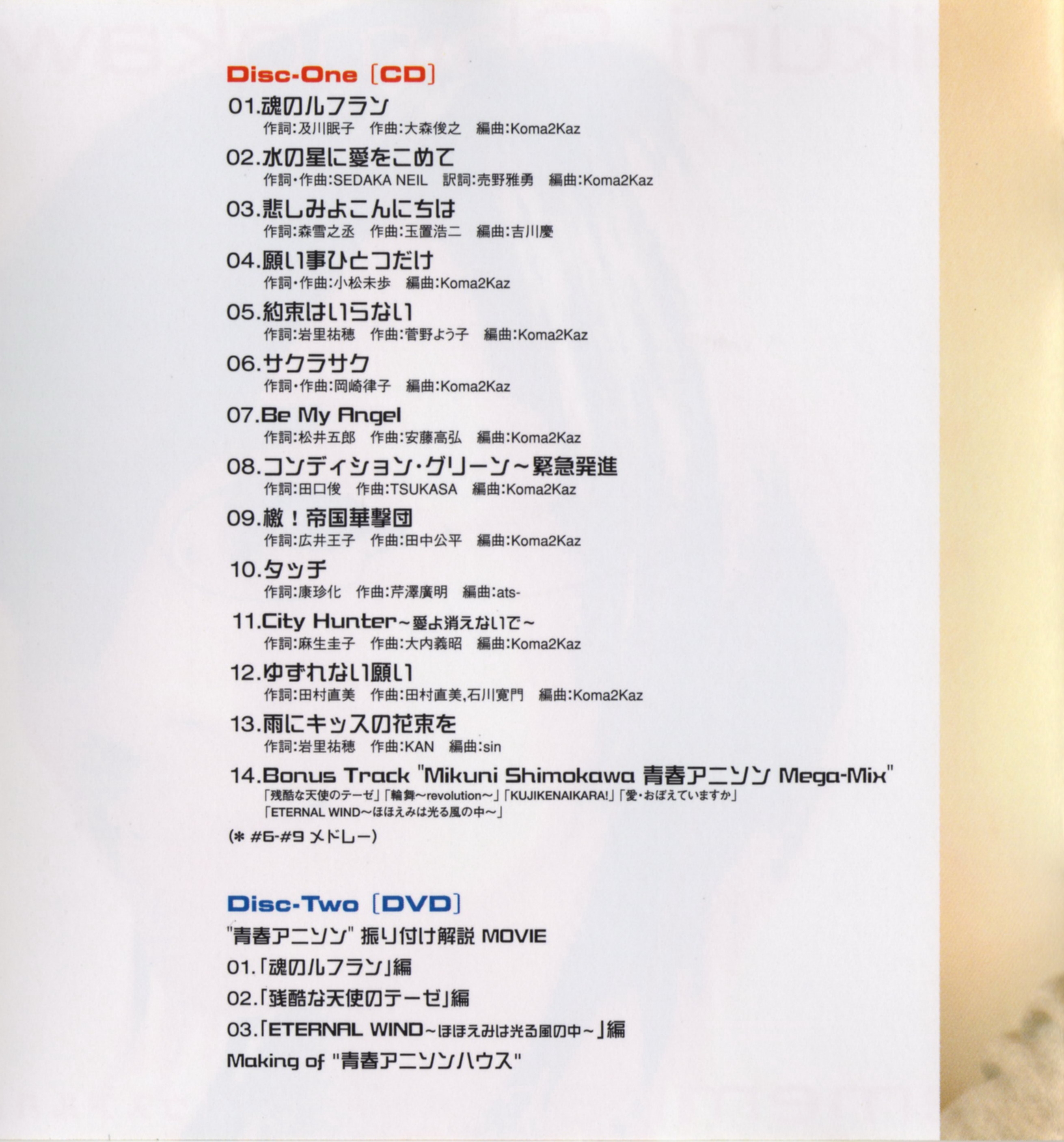 | 14. | Bonus Track “Mikuni Shimokawa 青春アニソンMega-Mix | 11:40 | 22.13 MB | 90.52 MB | get_app | playlist_add |