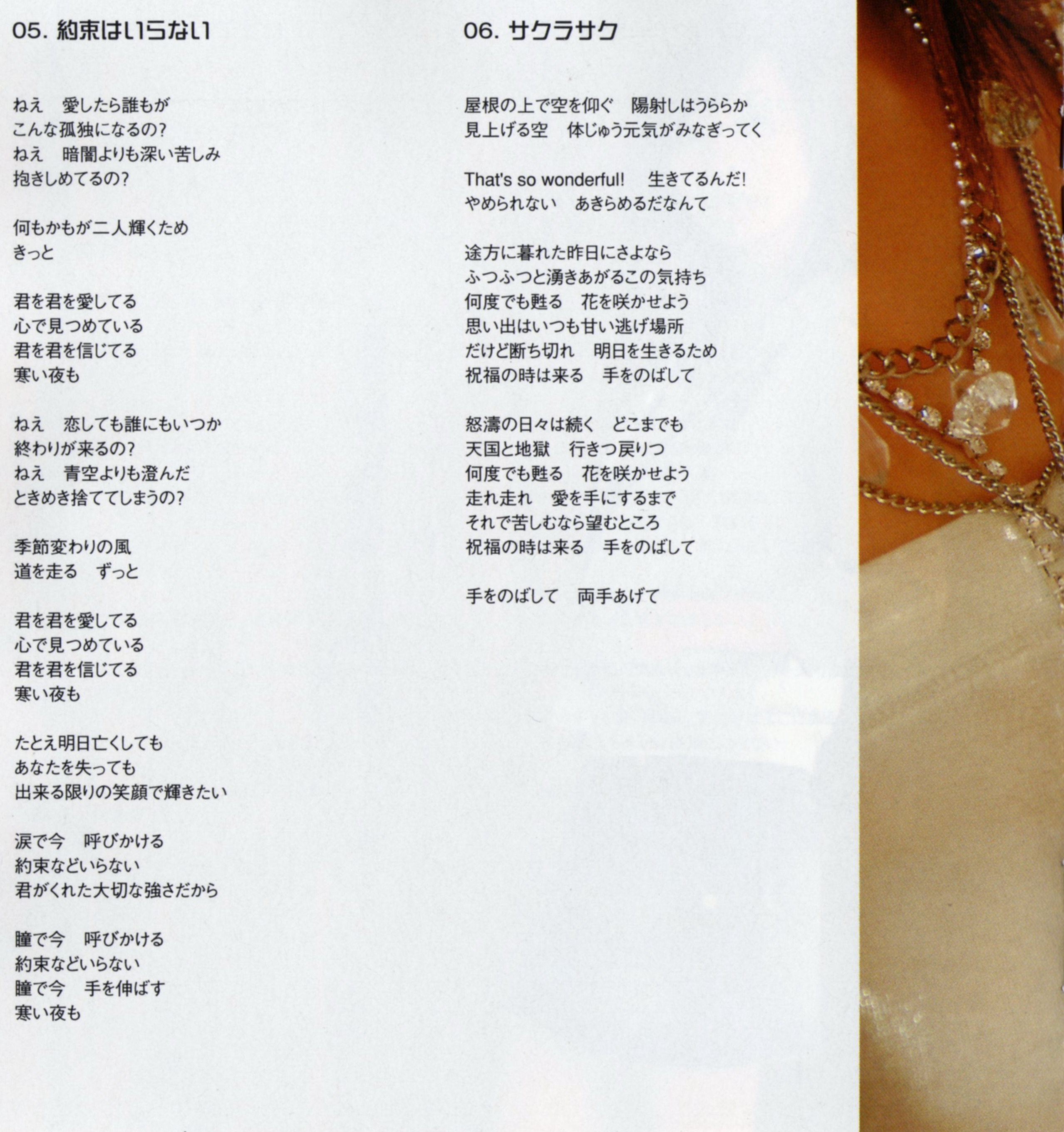 | 5. | 願い事ひとつだけ | 4:53 | 9.29 MB | 34.93 MB | get_app | playlist_add |