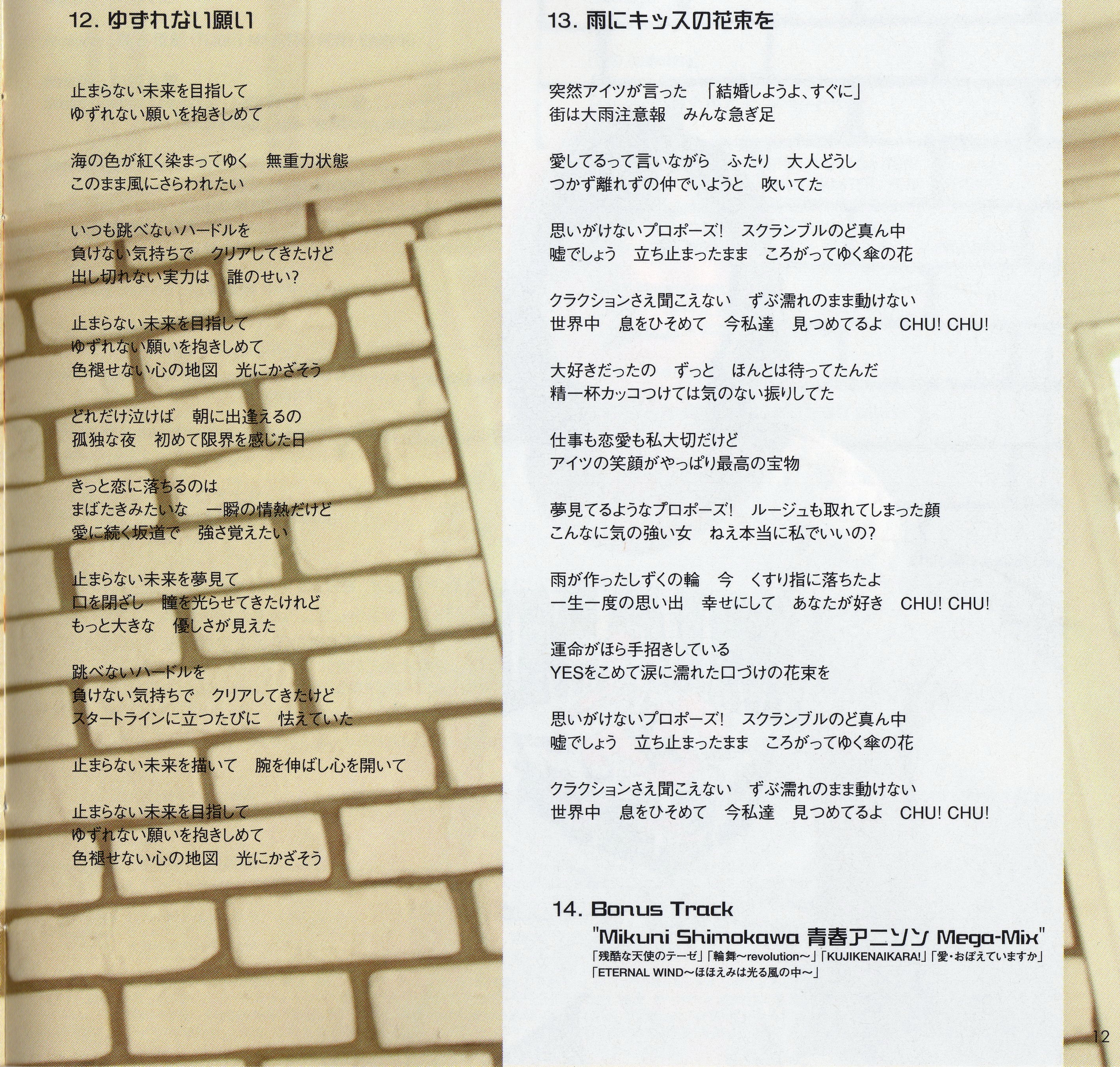 | 13. | ゆずれない願い | 5:33 | 11.00 MB | 38.47 MB | get_app | playlist_add |