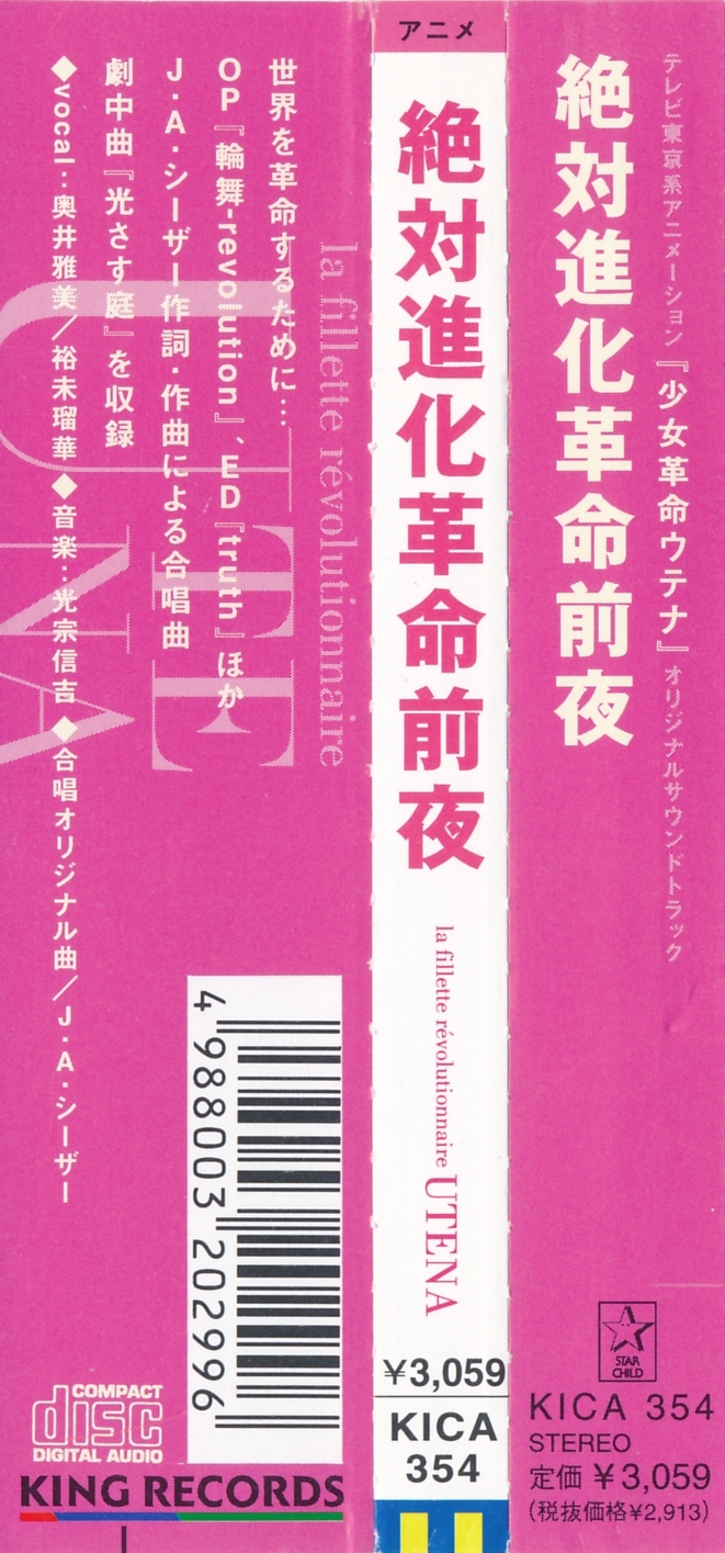 TV Tokyo-kei Animation "Shoujo Kakumei Utena" Original Soundtrack - Zettai Shinka Kakumei Zenya