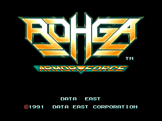 Rohga: Armor Force is an unusual scrolling horizontal shooter. Because the players control a mech, the players can hover against slanted walls in the background and occasionally land on higher platforms. Players are set with controls similar to a platformer as they face whichever horizontal direction they choose, can duck, aim their gun upwards at a 45 degree angle, and jump. Players can also move and aim their gun in different directions by holding the firing button down.