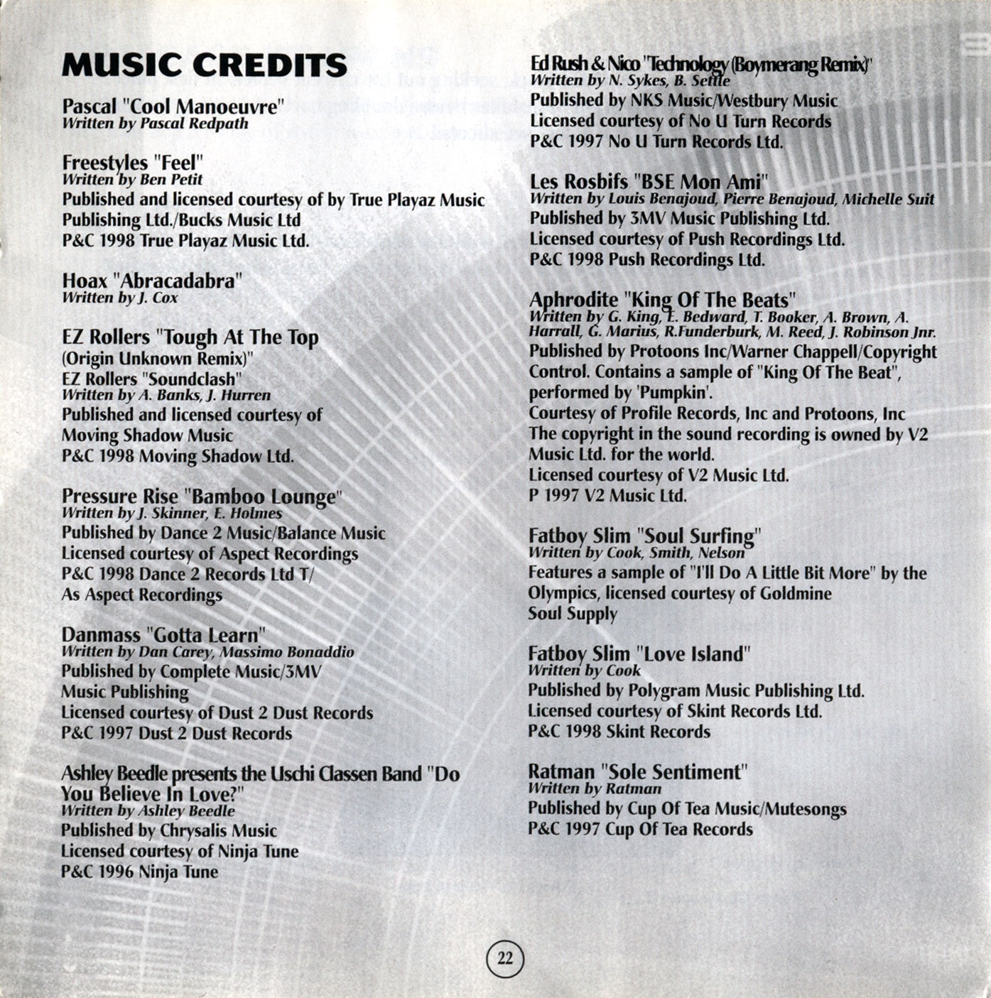 1. Soul Surfing - Fatboy Slim 4:56 9.05 MB 29.89 MB get_app