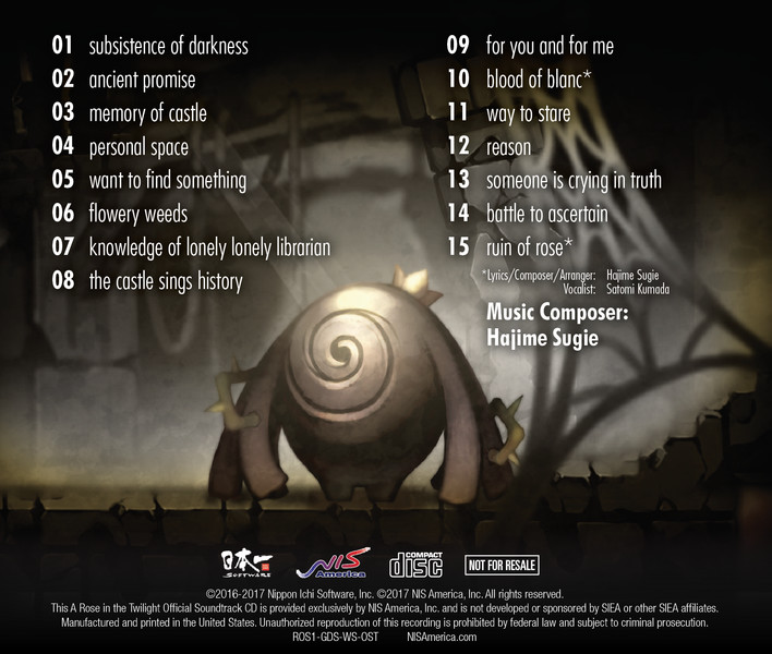 A Rose in the Twilight's soundtrack includes 15 tracks composed by Hajime Sugie.
