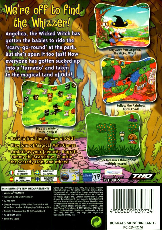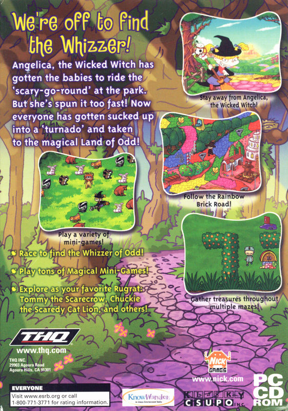 Come join the Rugrats in the land of odd. Tommy and all his Rugrats friends and try to find the Whizzer of Odd. Based on the classic story, The Wonderful Wizard of Oz, each of the familiar characters are protrayed by the Rugrats. Characters include Kimi as “the girl from Kansas”, Chuckie the “Scaredy-Cat Lion,” Tommy as “The Scarecrow” and Phil & Lil as “The Tin Twins.” The first one to find the Whizzer of Odd (Grandpa Lou) wins the game, but beware.. . . there are many obstacles standing in your way including The Munchin’ Tollbooth Keeper (Dil) and the Wicked Witch of the West (Angelica). Luckily, the Good Witch (Susie) will always be around to provide you with all the help that you may need.