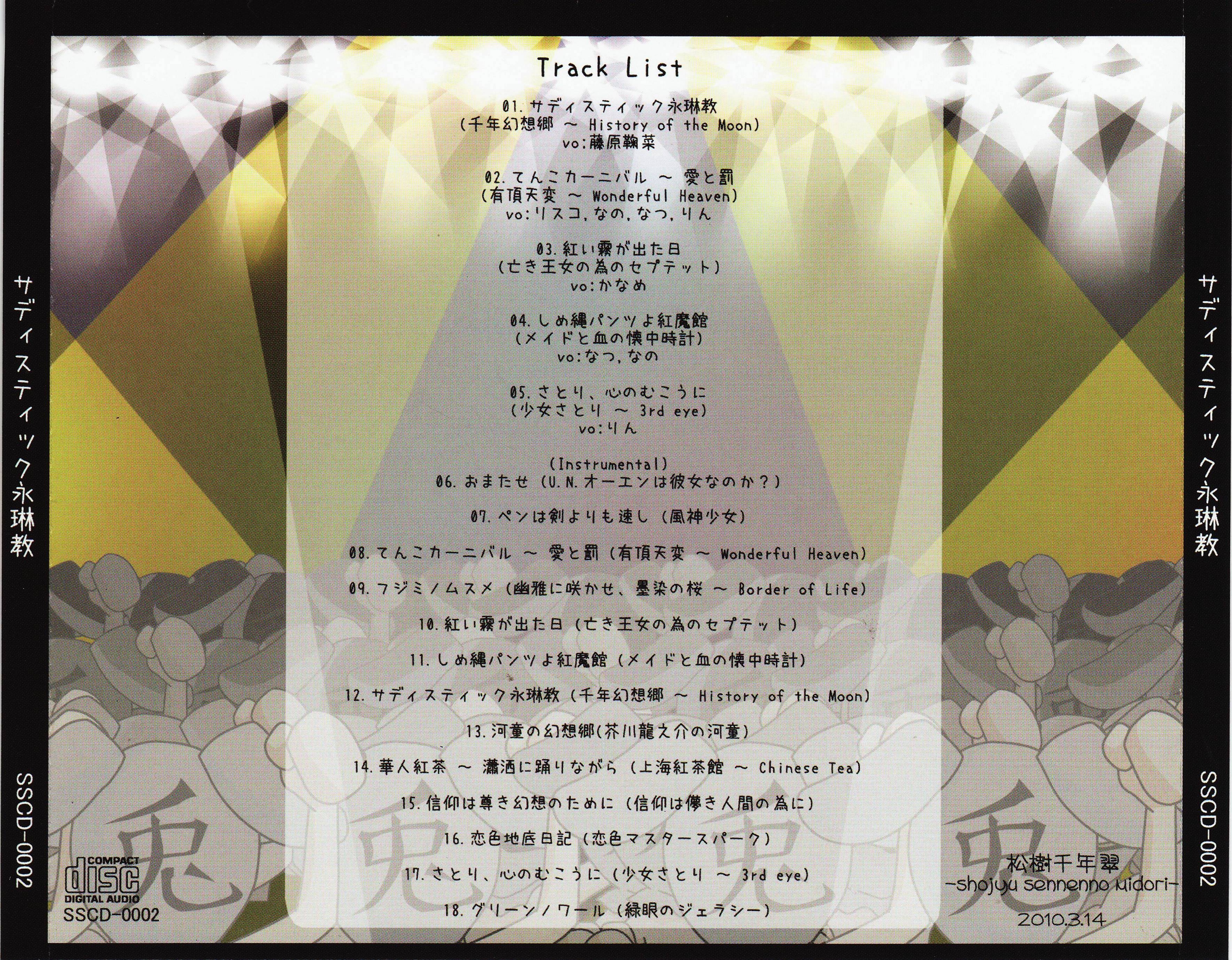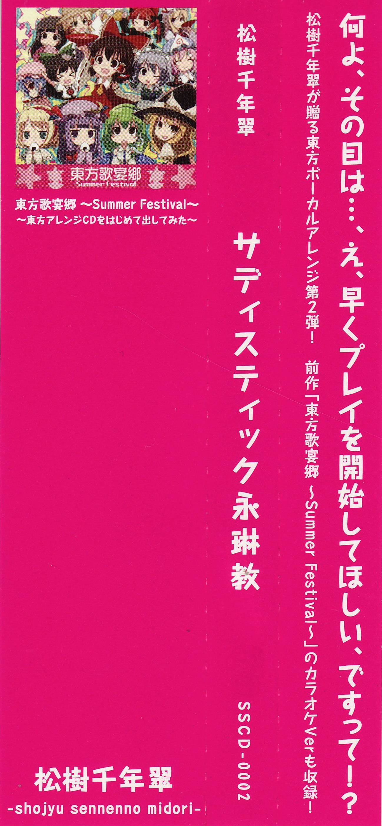 Tracks 06~18 are instrumental versions of all songs from Touhou Kaenkyou ~Summer Festival~ [SSMC-0001]