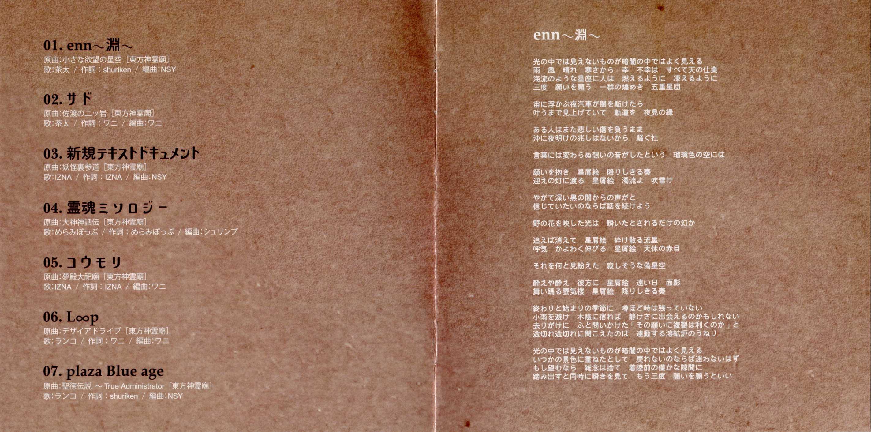 Track origins (all from Touhou Shinreibyou ~ Ten Desires):