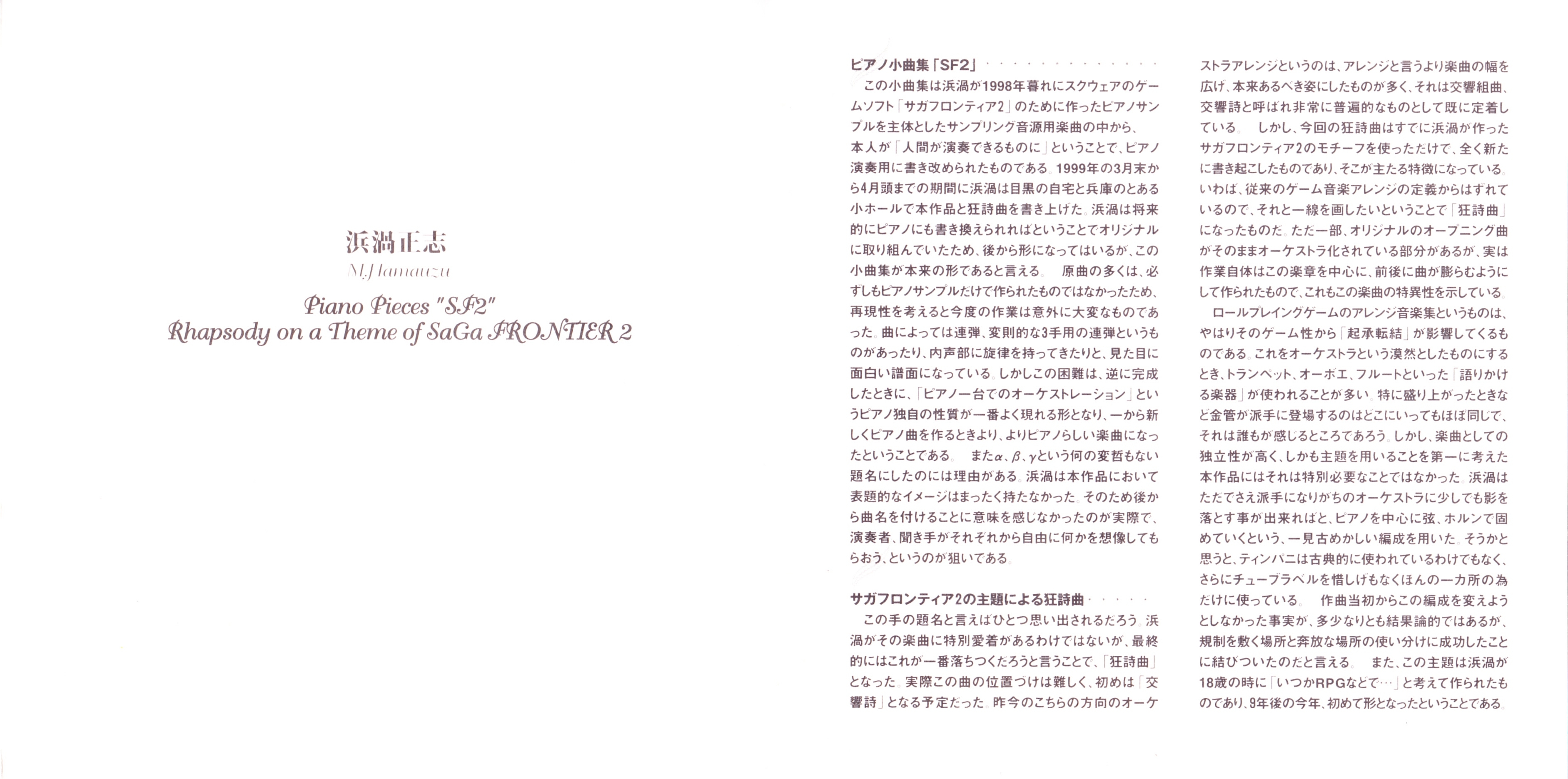 Liner Notes: Masashi Hamauzu (pg. 2-3)