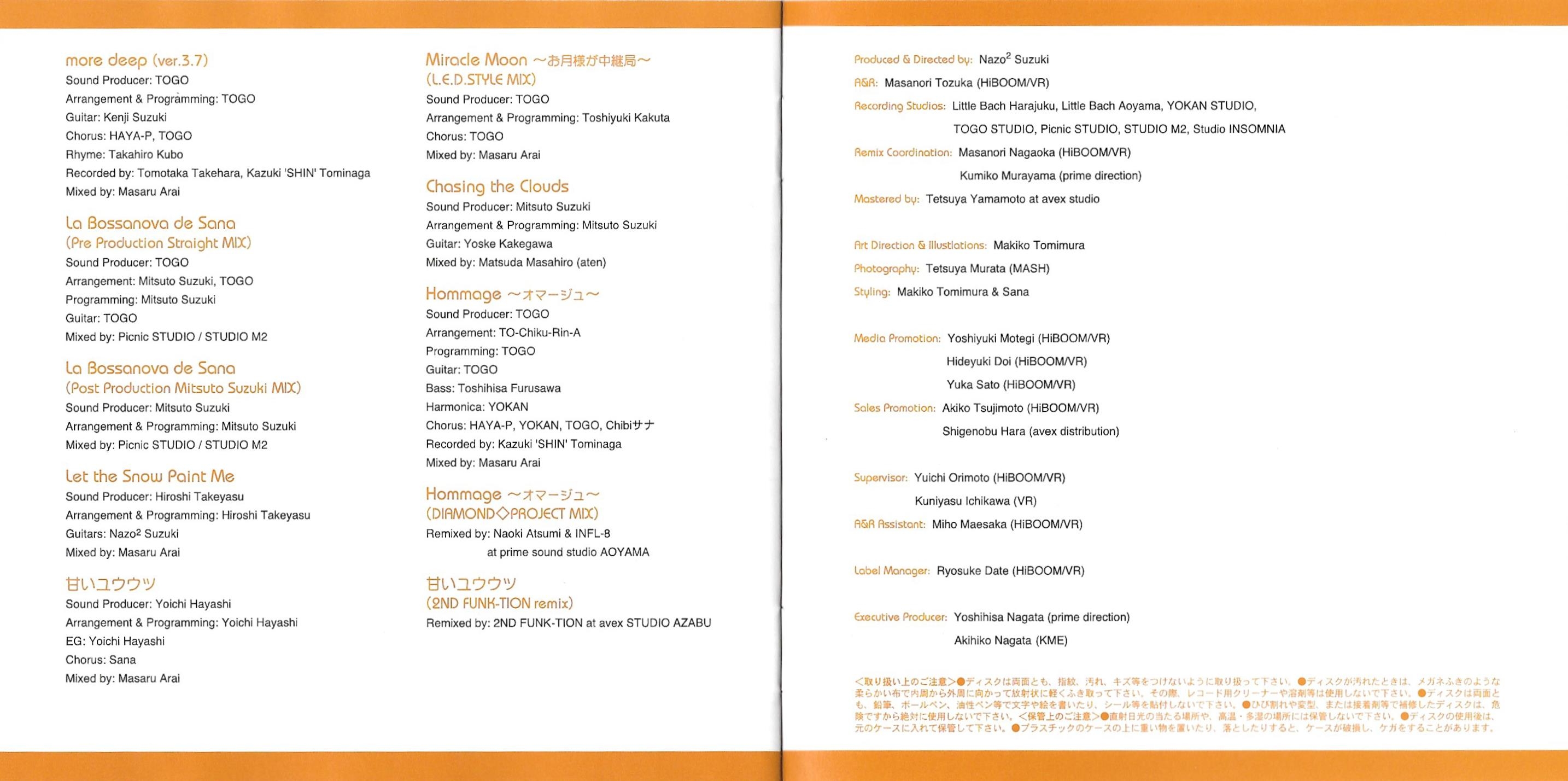 Sales Promotion: Akiko Tsujimoto (HiBOOM/VR), Shigenobu Hara (avex distribution)