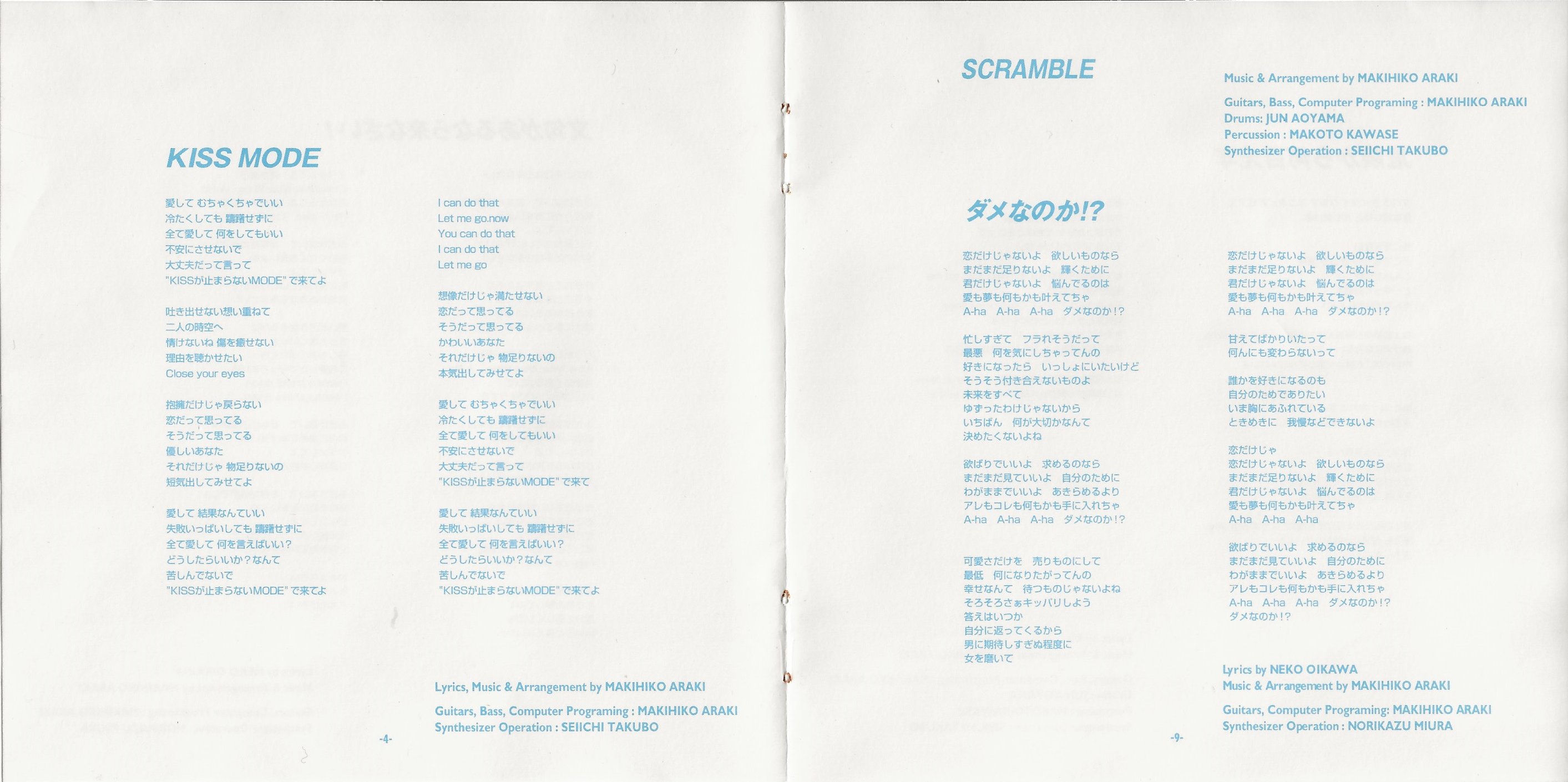 Published by: Inoks records inc. / STEREO, MAKIHIKO ARAKI, Pony Canyon, RIE / Rie Fujiwara
