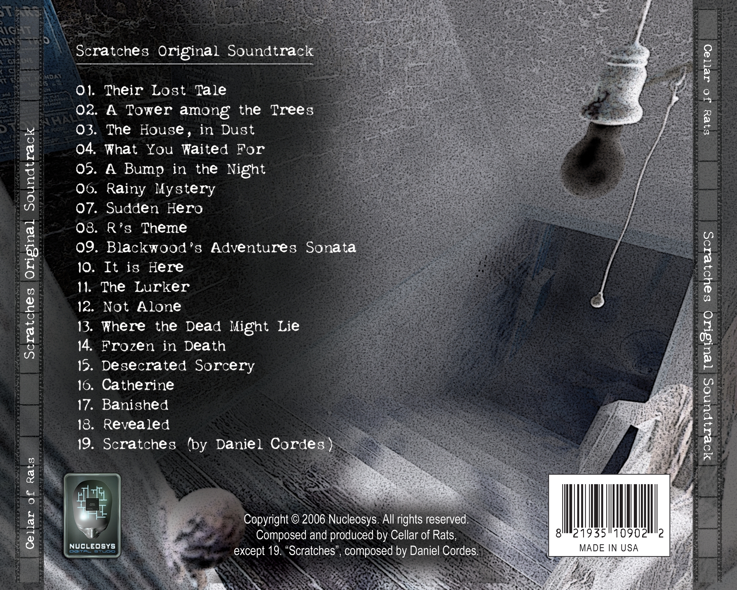 Composed and produced by Cellar of Rats, except 19, "Scratches," composed by Daniel Cordes.