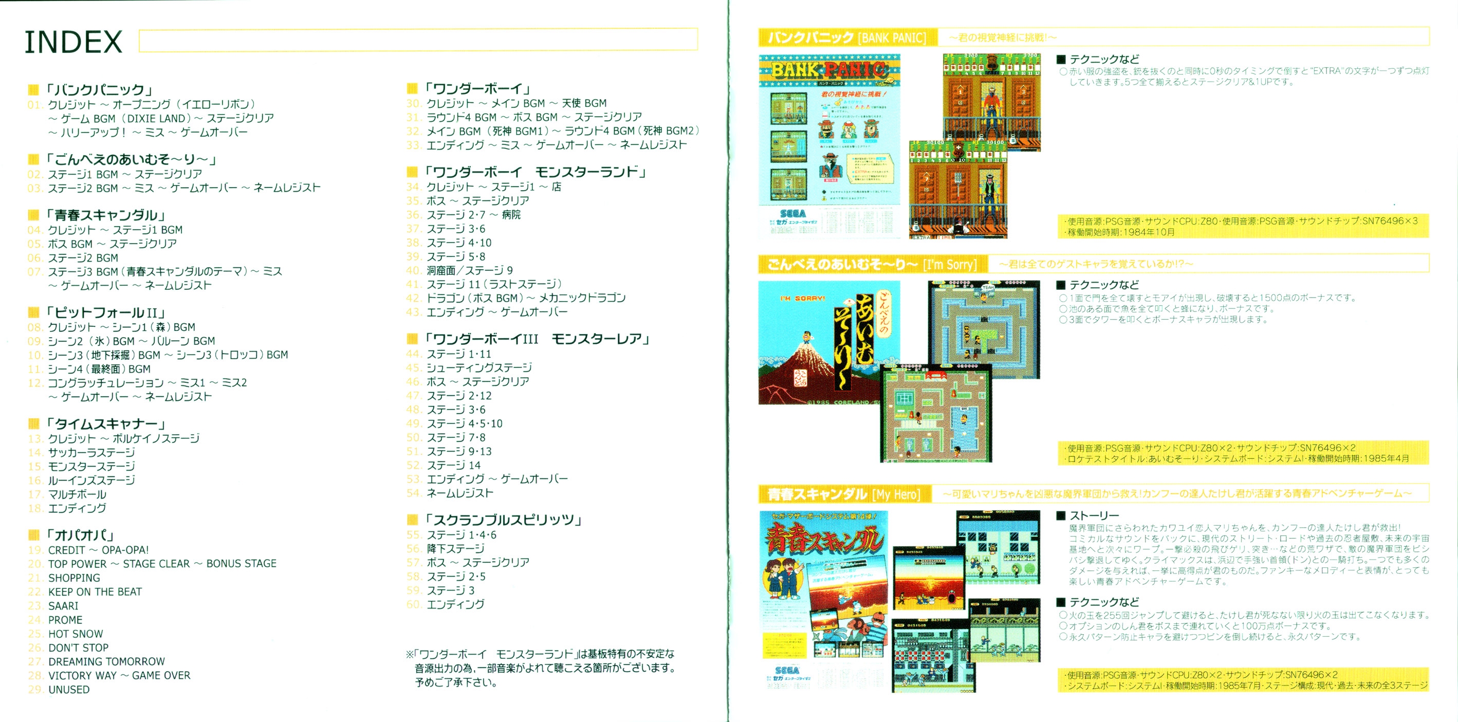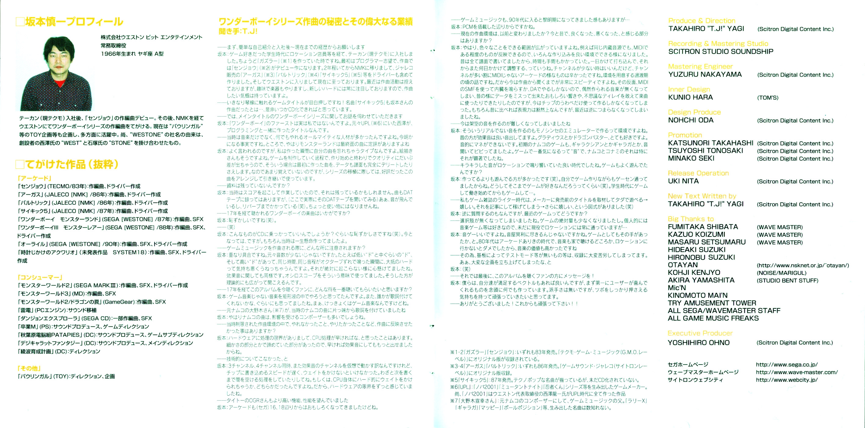 Big Thanks to: FUMITAKA SHIBATA (WAVE MASTER), KAZUO KOIZUMI (WAVE MASTER), MASARU SETSUMARU (WAVE MASTER), HIDEAKI SUZUKI, HIRONOBU SUZUKI, OTAYAN (http://www.nsknet.or.jp/otayan/), KOHJI KENJYO (NOISE/MARIGUL), AKIRA YAMASHITA (STUDIO BENT STUFF), Mic'N, TRY AMUSEMENT TOWER, ALL SEGA/WAVEMASTER STAFF, ALL GAME MUSIC FREAKS STAFF